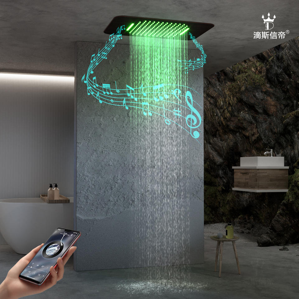 Juego de Ducha Musical LED de Acero Inoxidable Oculto con Ducha de Lluvia en Cascada de 58X38CM para Uso en Apartamentos