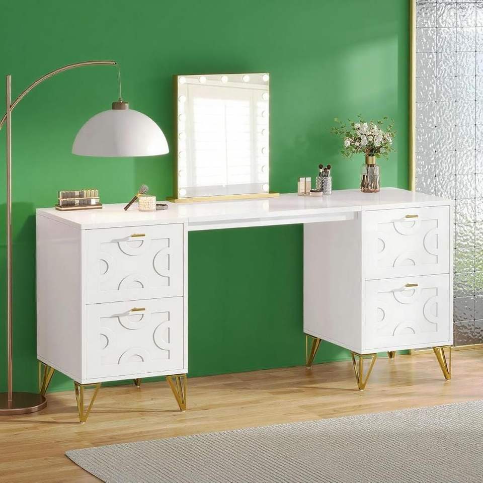 Tocador Moderno Blanco de 59 Pulgadas con 4 Cajones, Mesa de Maquillaje Sencilla para el Hogar con Almacenamiento, Sin Espejo