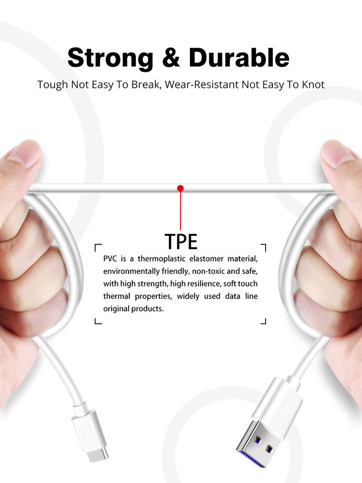 Cable USB tipo C 5A para móvil, Cable de carga rápida, blanco, para Samsung S20, S9, S8, Xiaomi, Huawei P30 Pro
