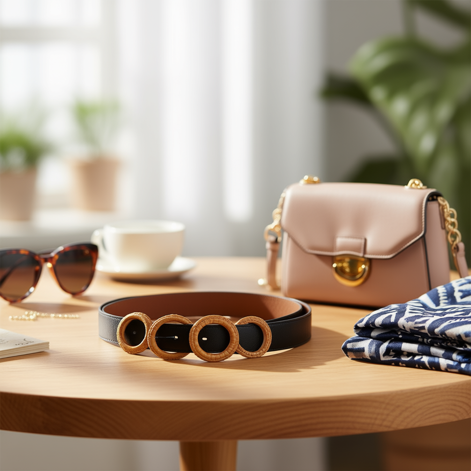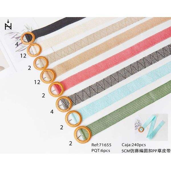 Cinturón de cuero PP con hebilla redonda de imitación de ratán de 5 cm para mujer, accesorio de moda.