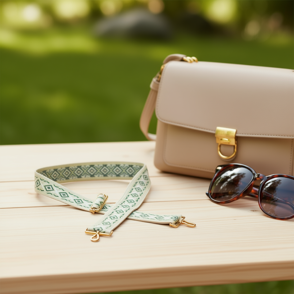 Correa de cincha de 5 cm con estampado a cuadros verde para bolso de mano