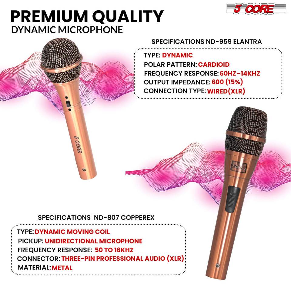 Par de Micrófonos de Mano XLR Dinámicos de 5 Núcleos, Micrófono de Karaoke con Sonido Claro y Elegante para Él y Ella, para Parejas