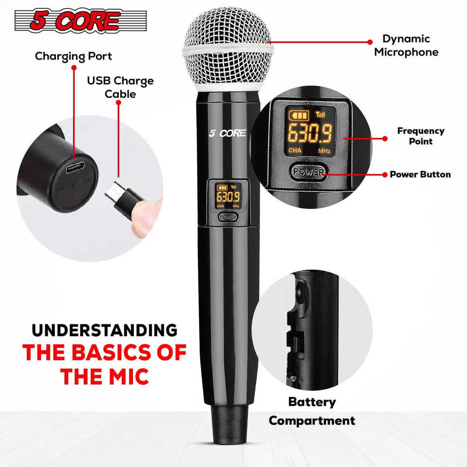 Micrófonos Inalámbricos de 5 Canales VHF, Micrófonos Inalámbricos Profesionales de Mano