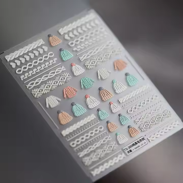 Palabras clave:En relieve de invierno suéter de punto pegatina de uñas
