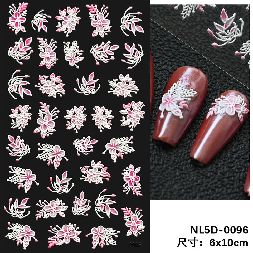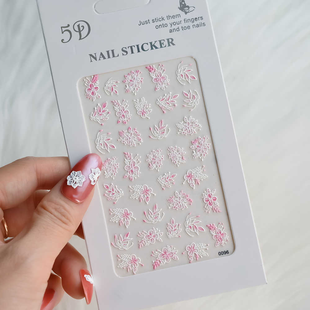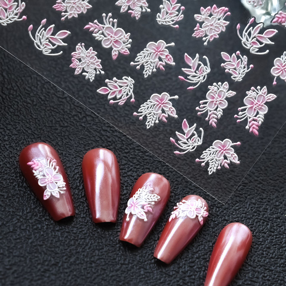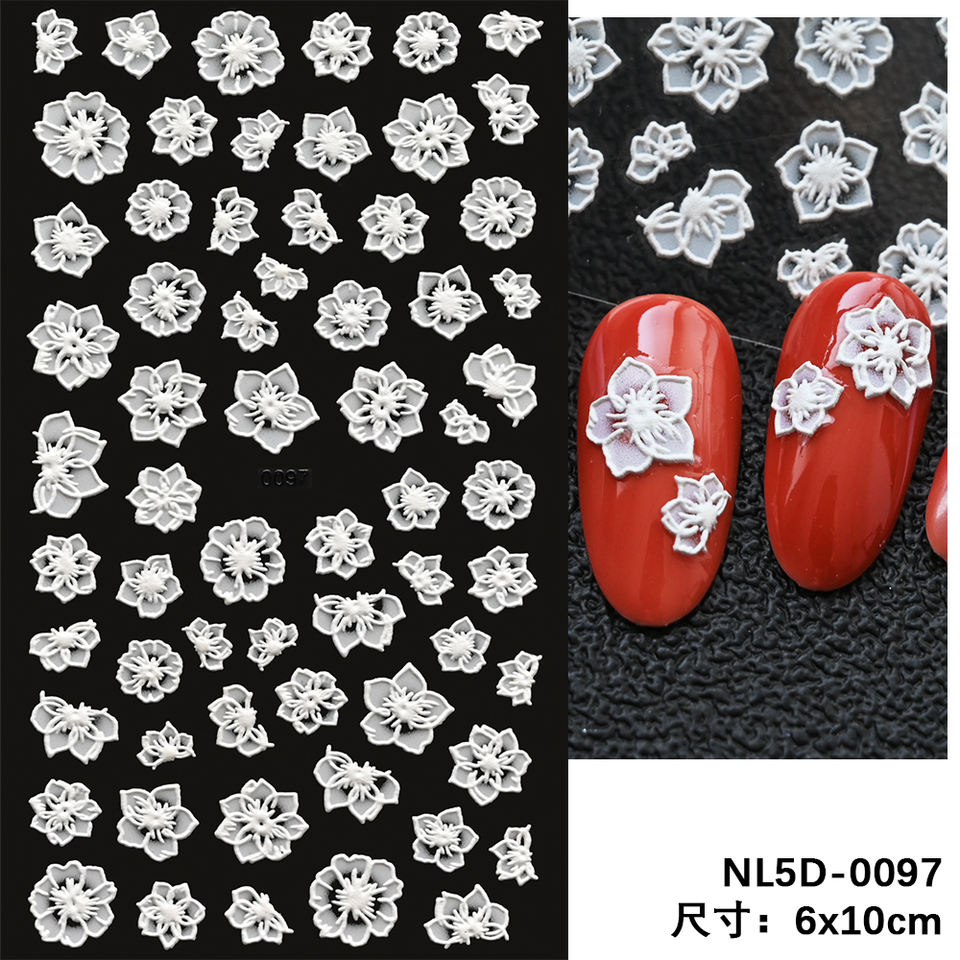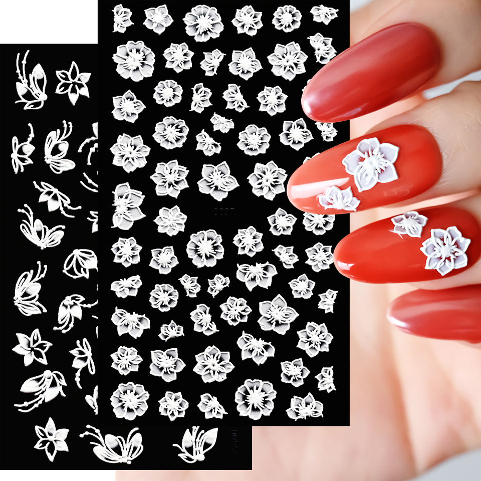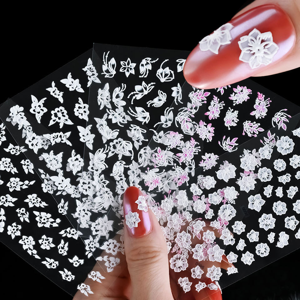 5D Rosa Blanco en relieve flor uñas pegatinas acrílico blanco encaje uñas calcomanías para boda novia manicura flores