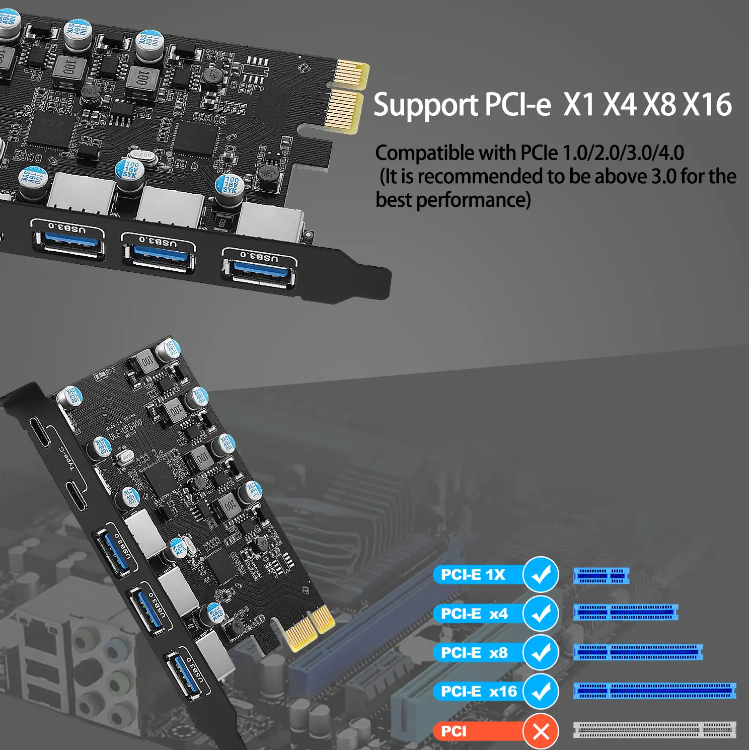 Hub USB-C PCIe USB 3.2 Gen1 de 5 Gbps, Tarjeta PCI Express USB 3.0, Multiplicador de Adaptador USB3.0, Controlador USB3 3.1, Tarjeta Adicional