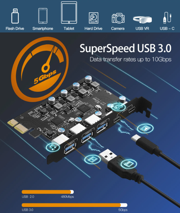 5Gbps USB 3,2 Gen1 PCIe USB C Hub USB 3,0 PCI Express Board PCI-E USB3.0 adaptador multiplicador USB3 3,1 controlador agregar en tarjeta