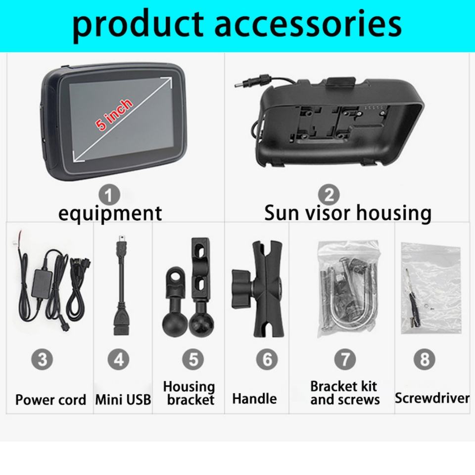 Pantalla LCD portátil para motocicleta con pantalla táctil de 5 pulgadas, monitor impermeable IPX7 para Apple Carplay inalámbrico, Moto Android Auto GPS