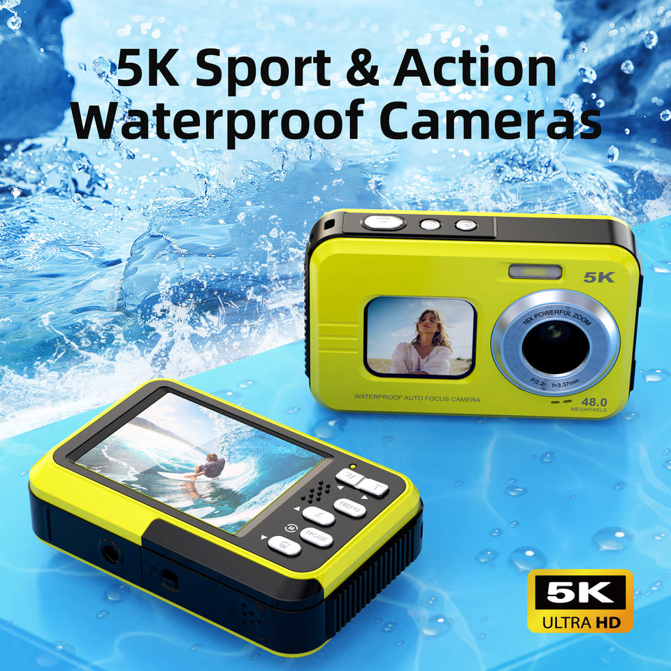 Cámara Digital 5K 1080p FHD con Enfoque Automático, Pantalla de 2.8'', Doble Lente para Selfies, Video Deportivo, Resistente al Agua, MOS, 1 Año de Garantía para Fotografía