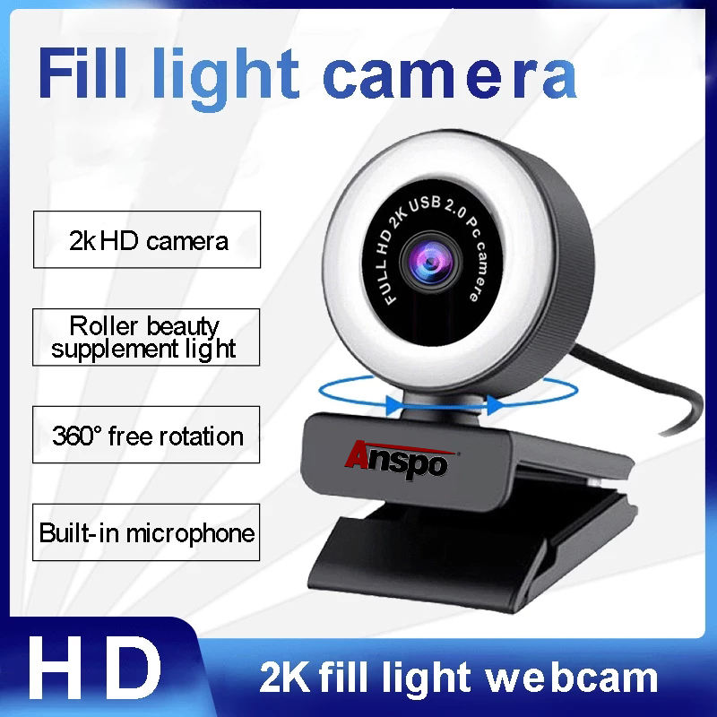 Cámara web USB de 5MP con enfoque automático para salas de chat, reuniones de conferencias, transmisión en vivo, computadora portátil, anillo de luz, cámara USB de seguridad