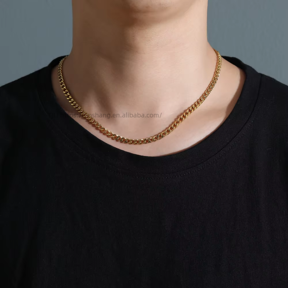 Cadena Cubana Pulida de 5 mm, Chapada al Vacío en Acero Inoxidable 18k, Cadena Cubana Pulida Estilo Hip-Hop, Moda Tanjing