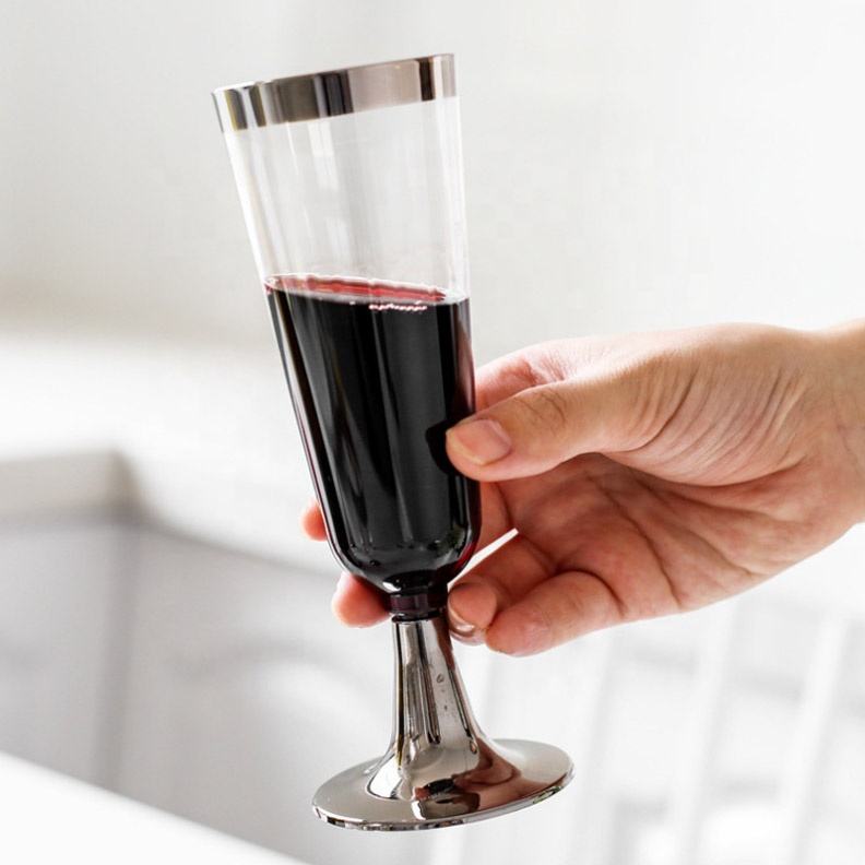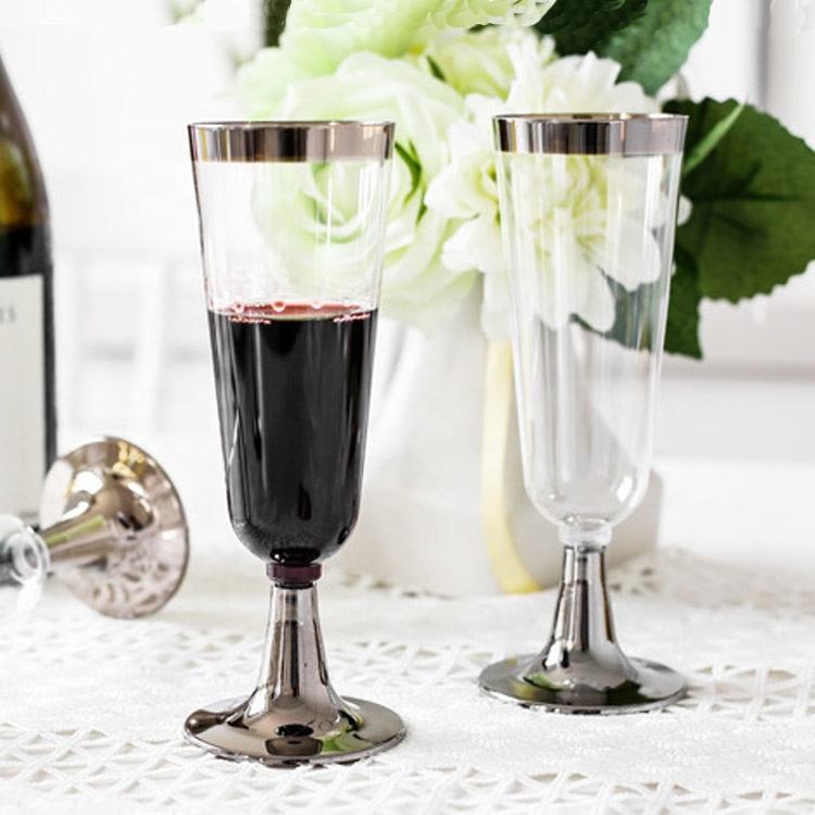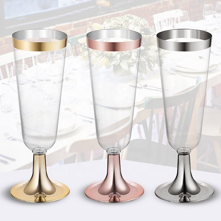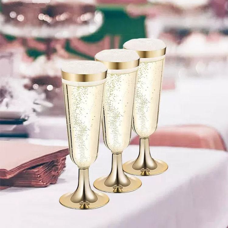 Vasos de plástico desechables de 5OZ, copa de champán de plástico duro con borde dorado, vasos de fiesta de vino tinto