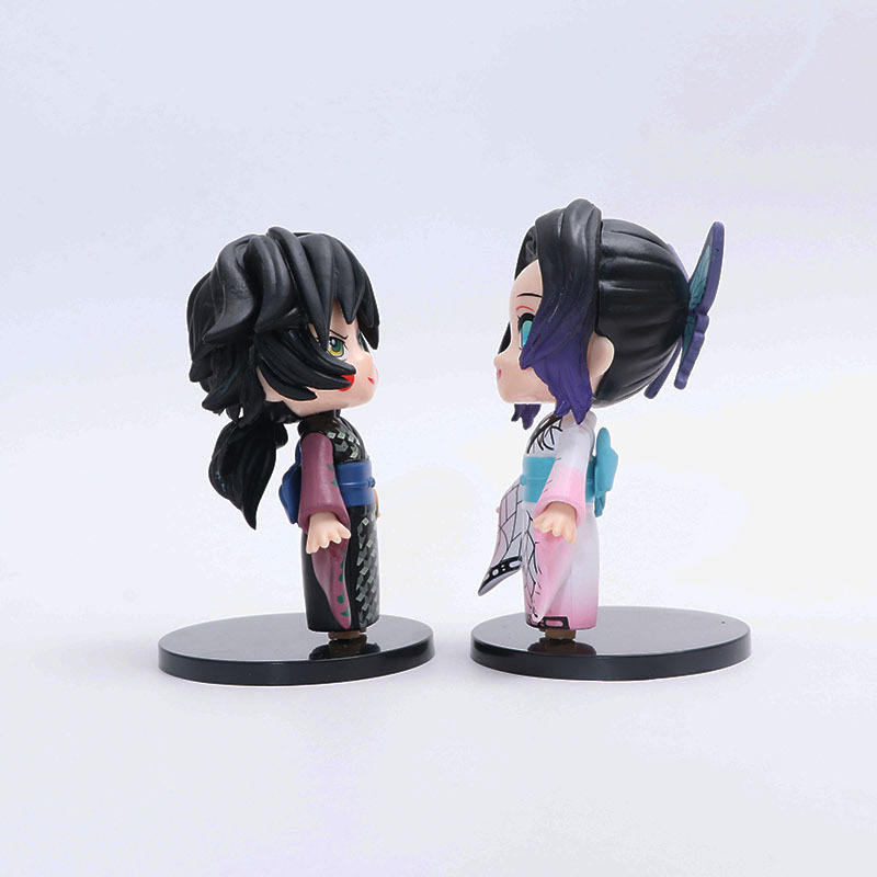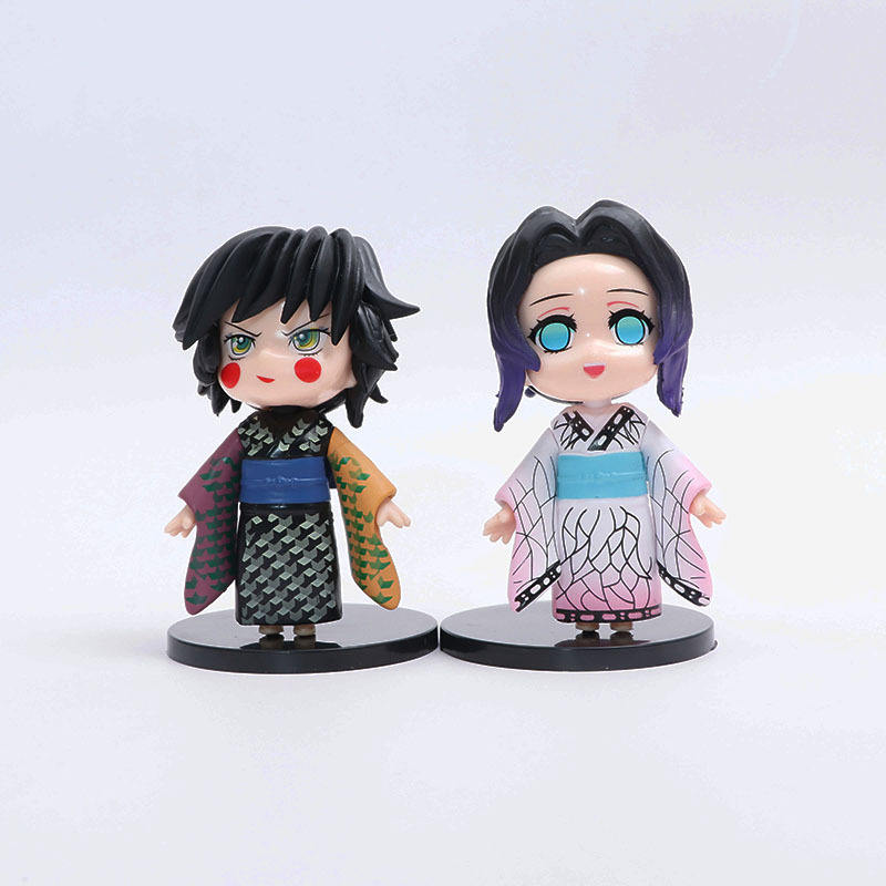 Set de 5 Figuras de Anime Estilo Kimono, Tanjiro, Nezuko, Giyu, Shinobu, Zenitsu, Diseño Lindo con Color Rosa, 10 cm de Altura, con Base Negra