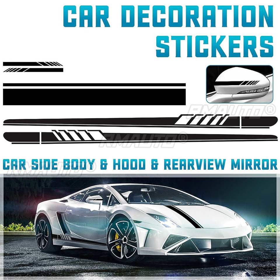 5 pegatinas para coche, franjas laterales, calcomanías para carrocería, cubierta de capó, espejo retrovisor, accesorios deportivos de carreras para Toyota, BMW, Audi