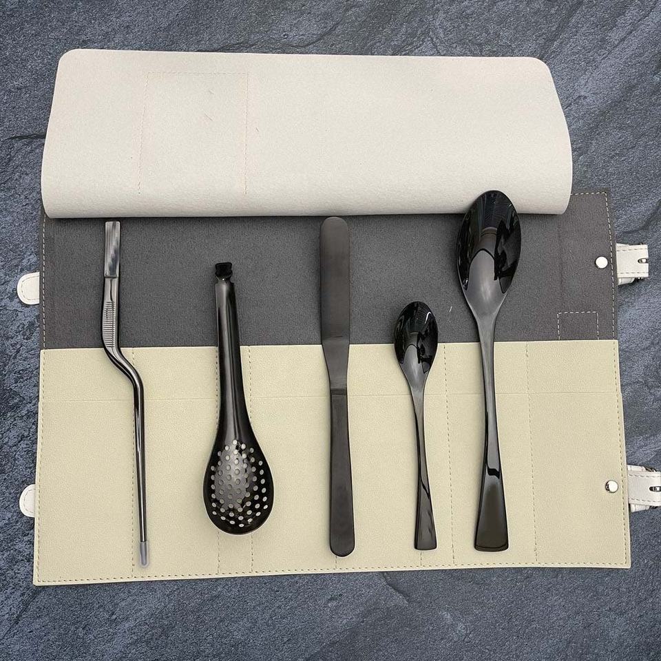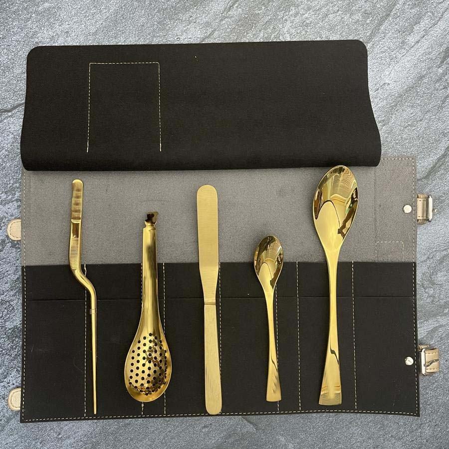 Juego de 5 Utensilios de Cocina de Acero Inoxidable con Acabado Espejo, Antideslizantes, Aptos para Lavavajillas, para Presentación de Alimentos