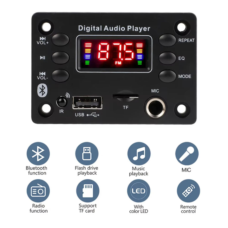 Placa Decodificadora de Audio 5.0 de 5V-12V Módulo de Audio USB Radio FM Sin Pérdidas DIY Mini Reproductor MP3 Digital Tarjeta de Radio y Micrófono