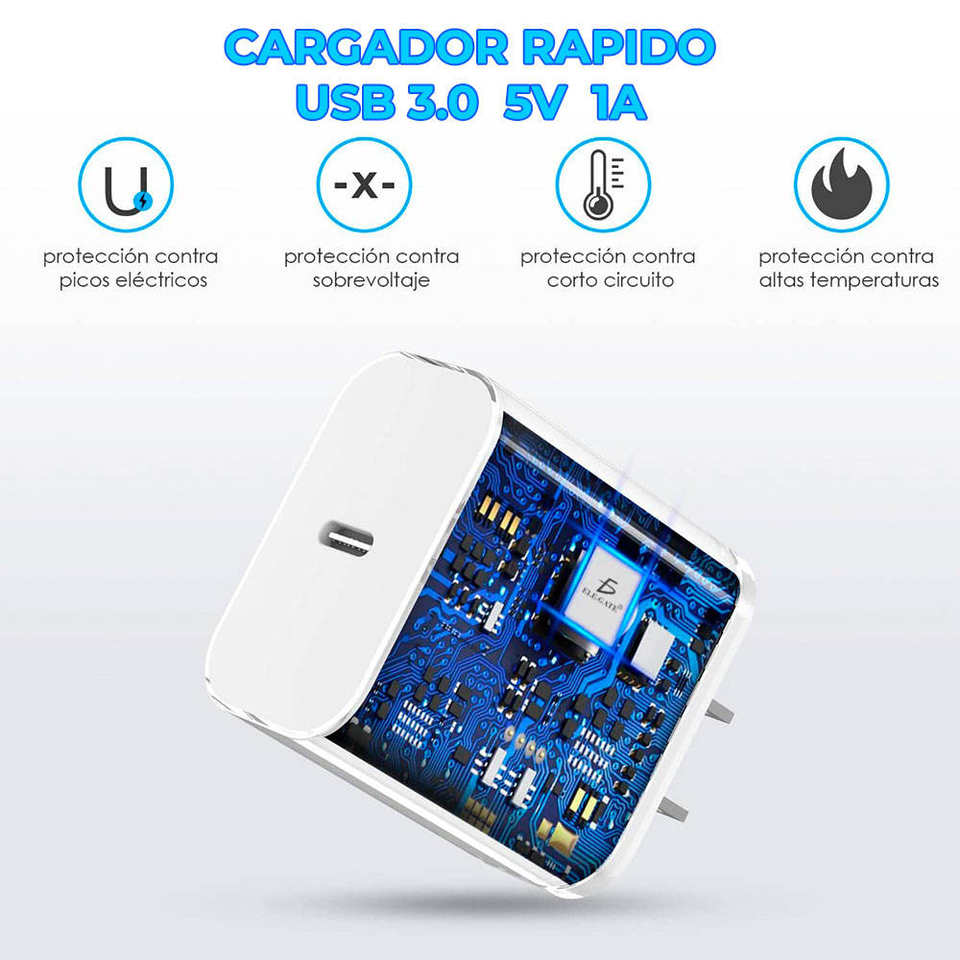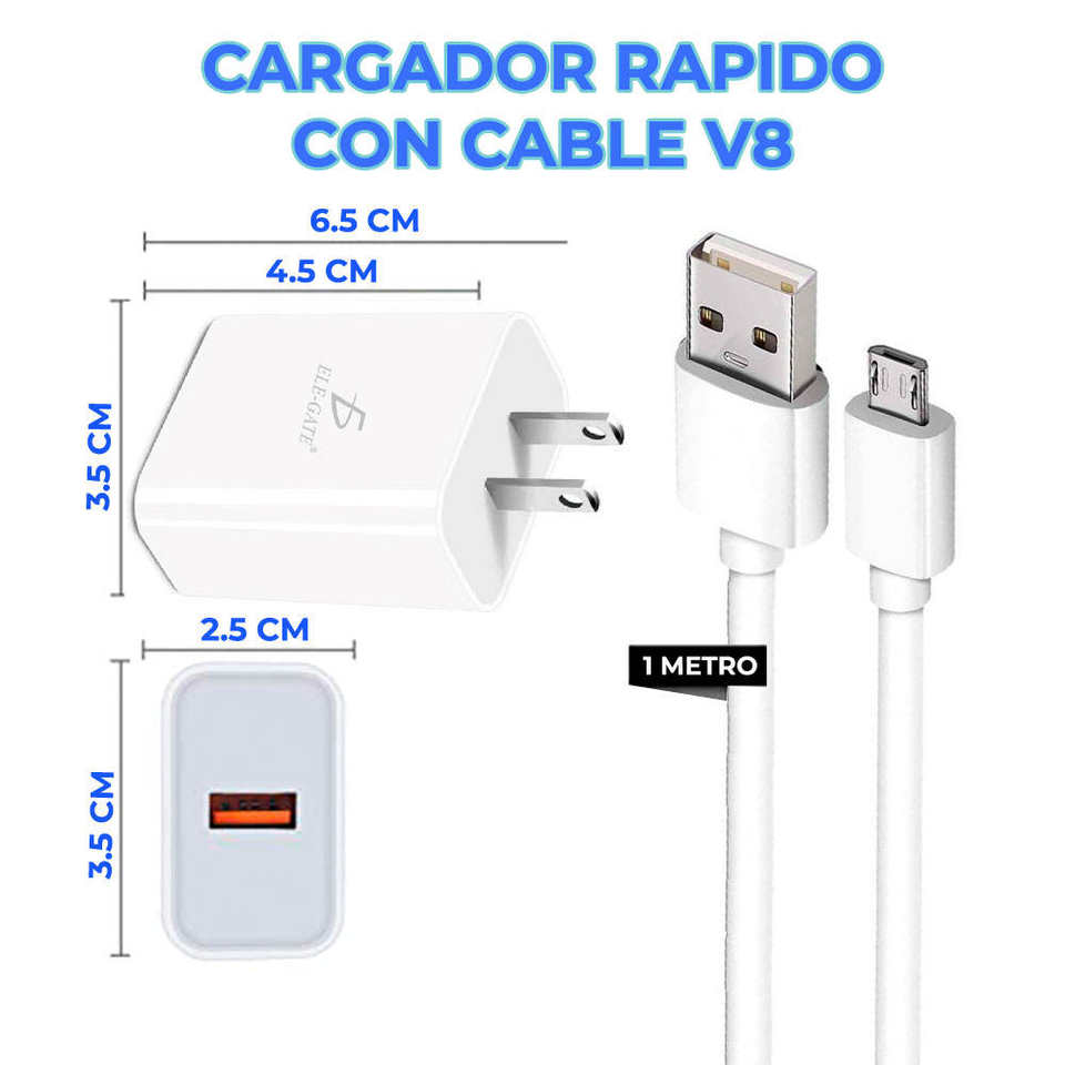 Cargador Rápido de Teléfono Celular de 5V 1A con Cable Micro USB V8