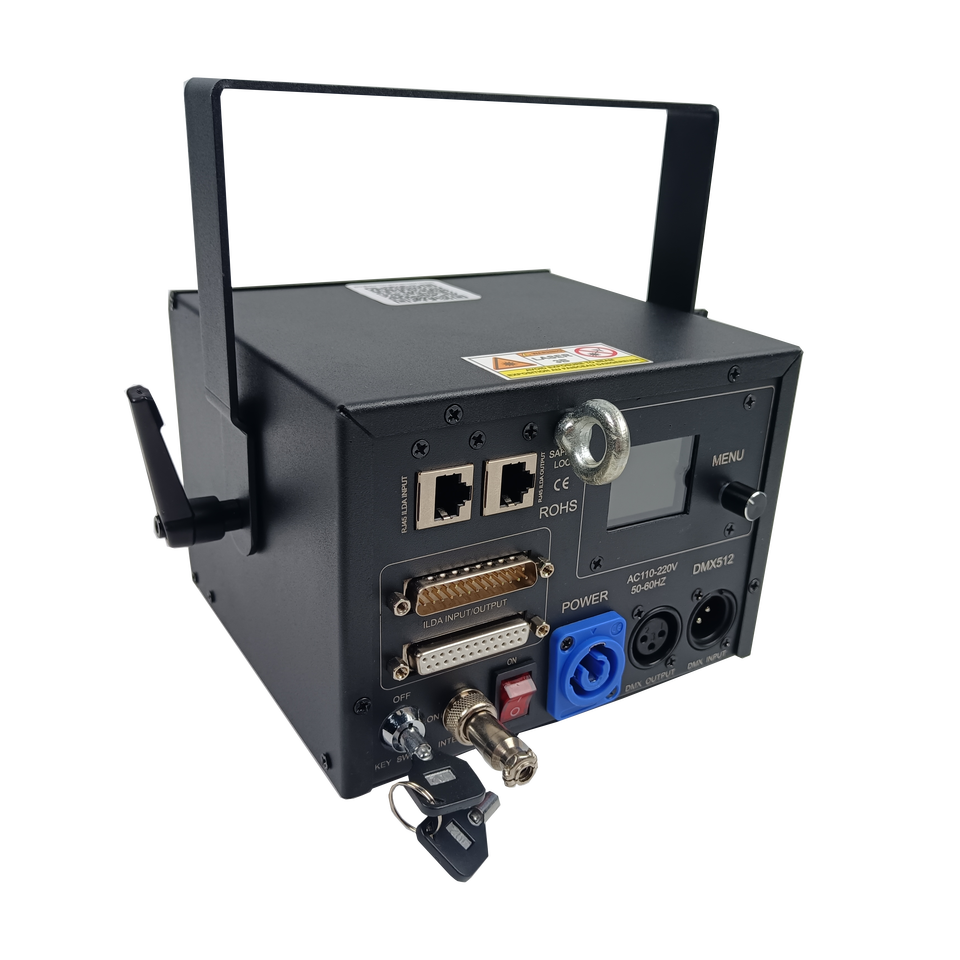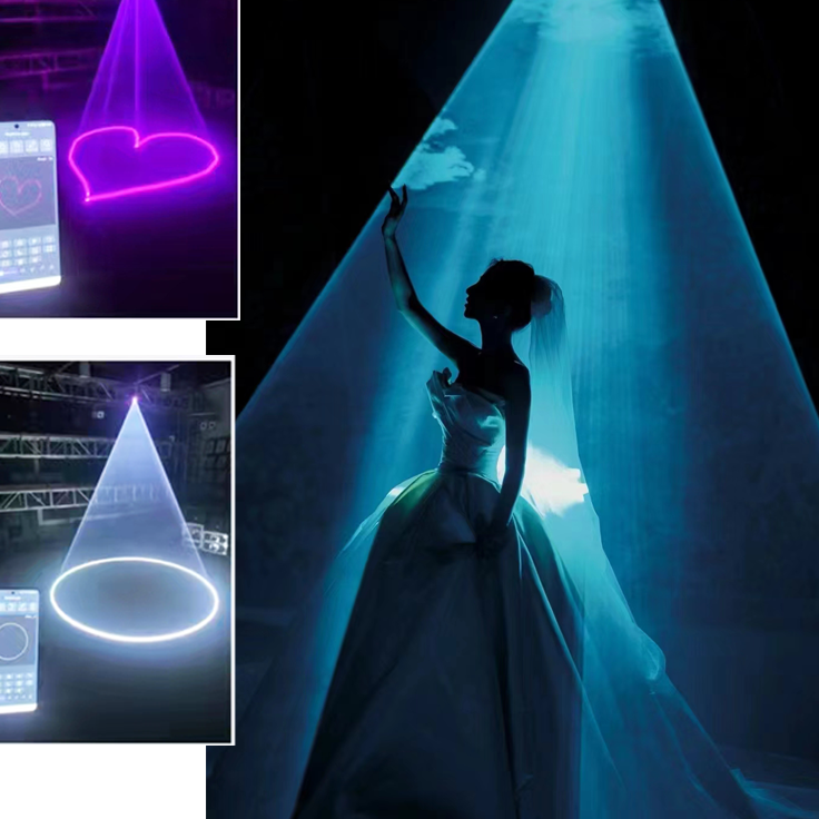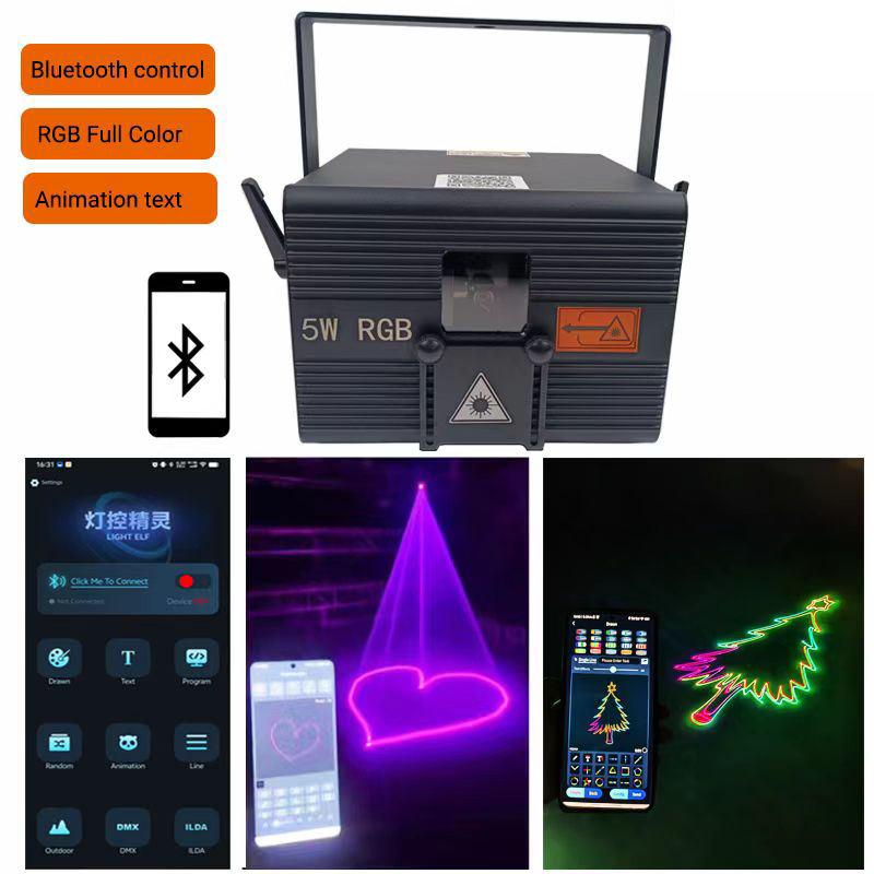 Luz láser de 5W DMX RGB Proyector de animación Aplicación de teléfono controlada para discoteca Boda Espectáculos láser Efectos de iluminación de escenario