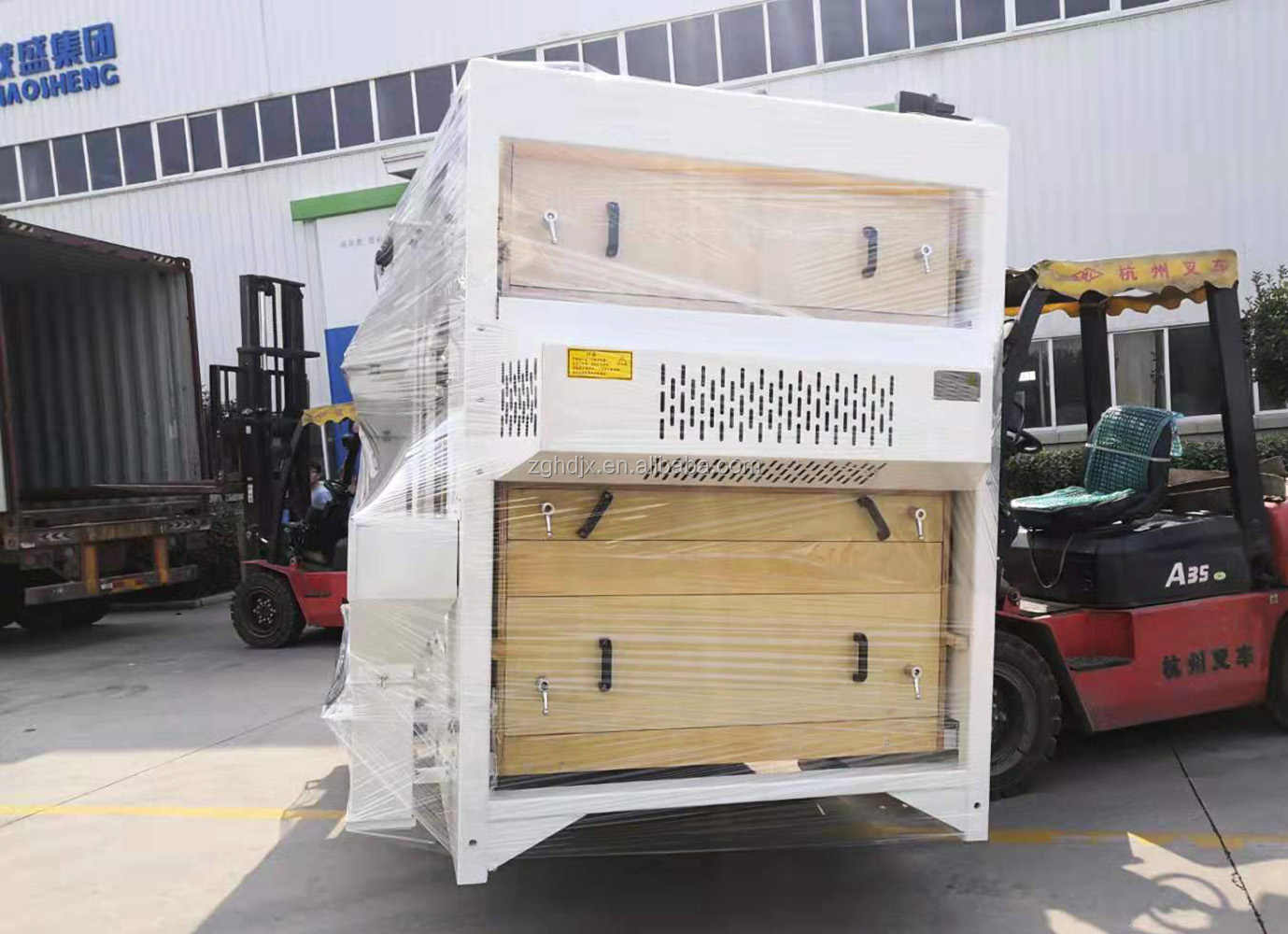 Caja de plástico, paleta o madera contrachapada para la carga del contenedor del limpiador de cereales con pantalla de aire, según los requisitos. Caja de madera contrachapada Marina estándar de exportación para piezas de repuesto.