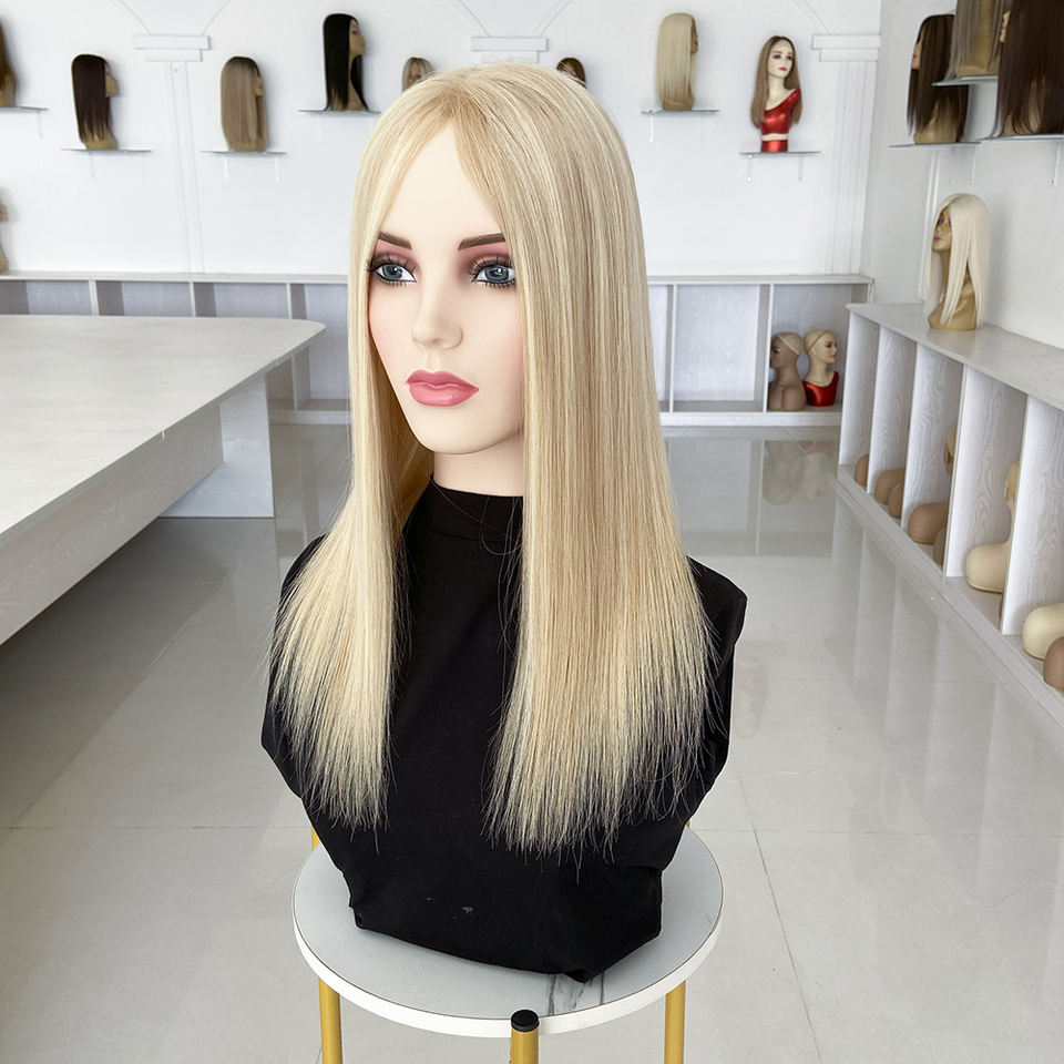 Cabello Remy Virgen de 5x6.5 Pulgadas # RH23/1001 Topper de Cabello Rubio con Base de Seda, Sistema de Reemplazo Capilar Invisible, Listo para Enviar