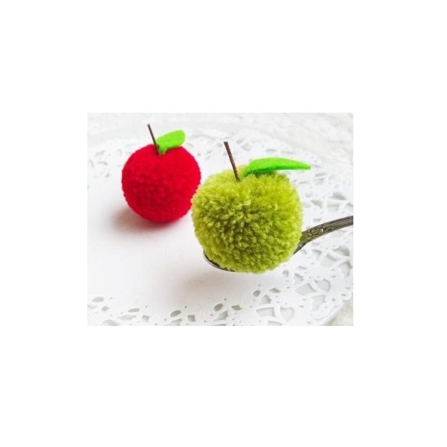 Mini pompones de 5 cm con diseño de pera y manzana para manualidades, juguetes y decoración. Compre directamente del proveedor a precio de mayoreo.