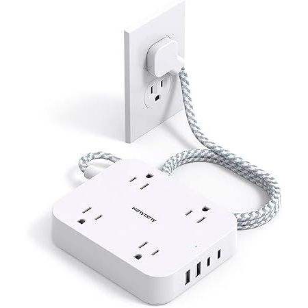 Regleta de alimentación de 1.5 m con enchufe plano, 4 puertos USB-C y 4 tomas de corriente amplias, extensor de carga para escritorio o montaje en pared con 4 puertos USB