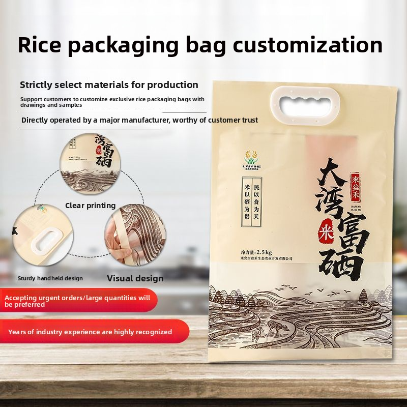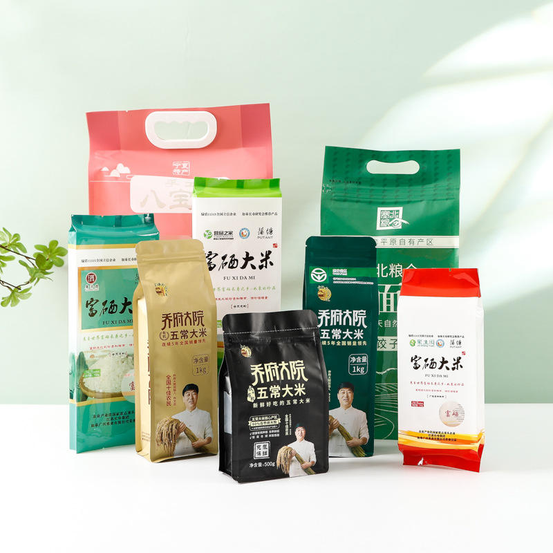 Bolsas de envasado de arroz manejadas de 5kg 10jin 8 bolsas de vacío selladas laterales para arroz ecológico