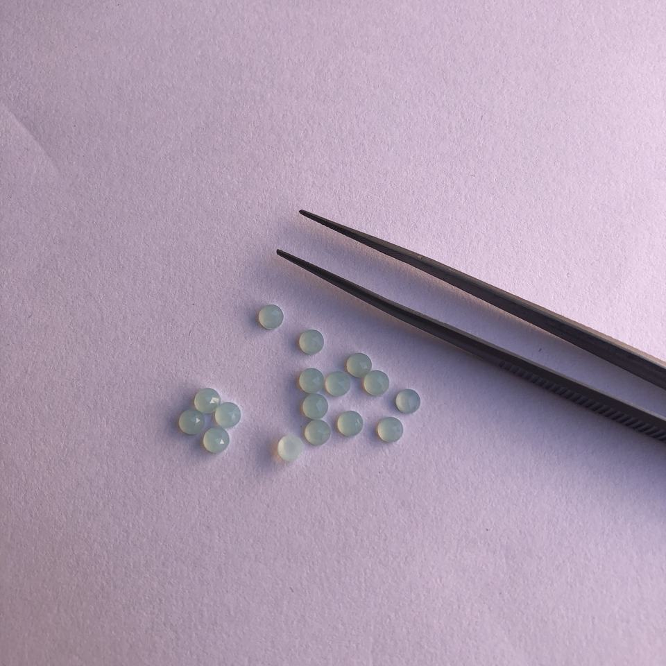 Nombre del Producto:Calcedonia Natural Azul Aqua, Cabujón Redondo Suelto con Corte Rosa