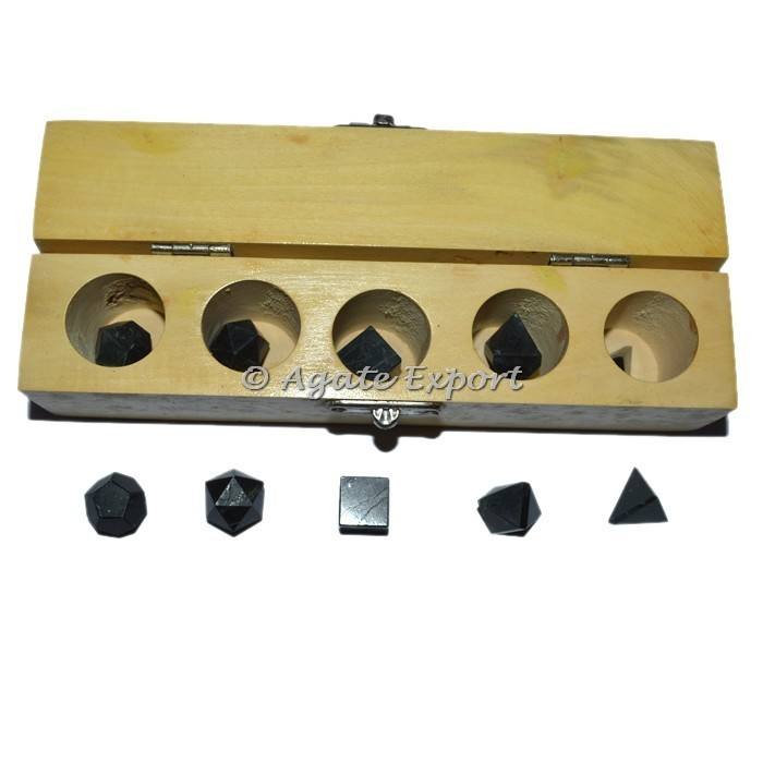 Juego de geometría de turmalina negra de 5 piezas Colección de artesanías de piedra semipreciosa