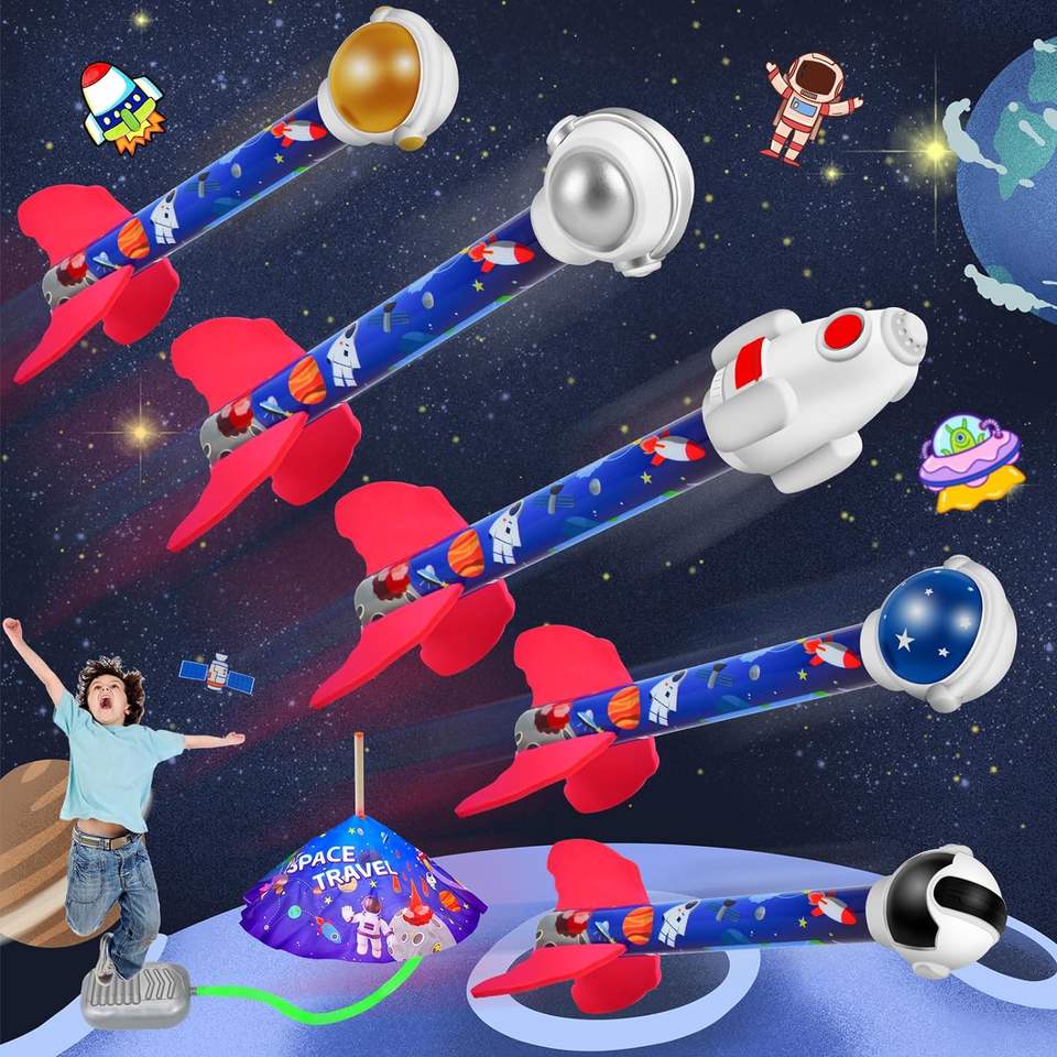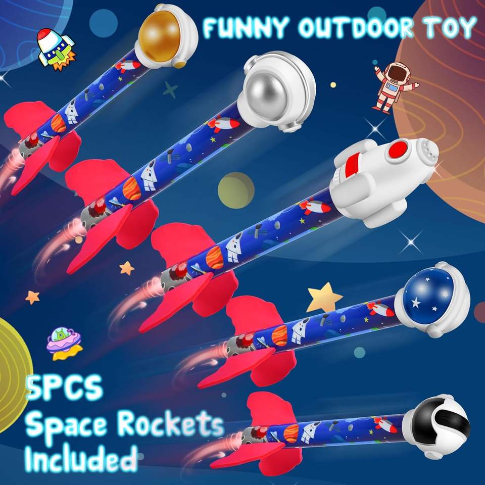 Lanzadores de cohetes de espuma voladora espacial multicolor, 5 uds., lanzadores de cohetes de aire de espuma para niños, divertidos juguetes al aire libre, juguetes de lanzamiento