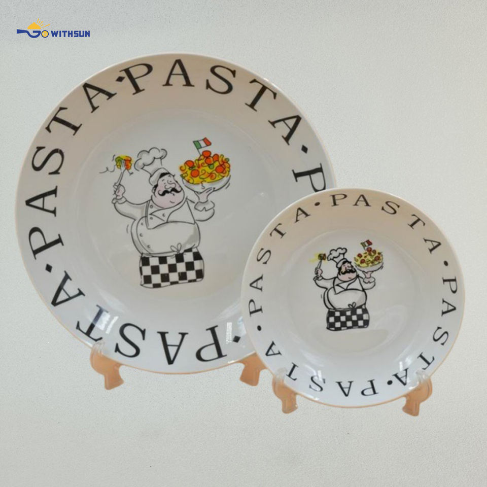 Juego de 5 Platos de Pasta de Porcelana Vegetal Ecológica con Impresión Personalizada de Fideos Italianos, Plato de Cerámica para Servir Pasta en la Cocina Europea