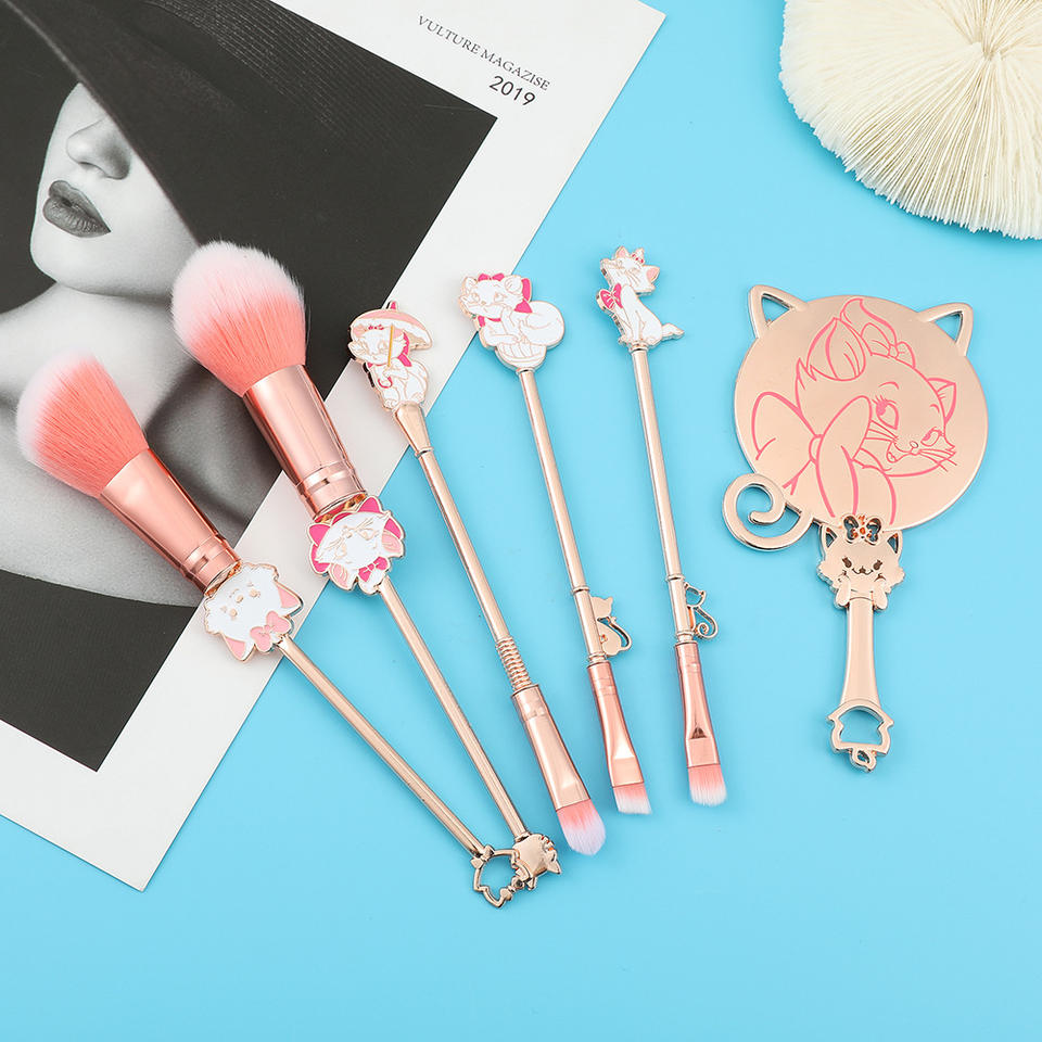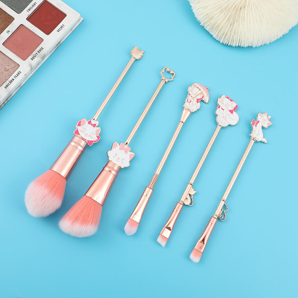Juego de brochas de maquillaje de gato Marie de dibujos animados rosa de 5 uds para niñas hermoso juego de brochas de sombra de ojos de Metal brocha para polvo