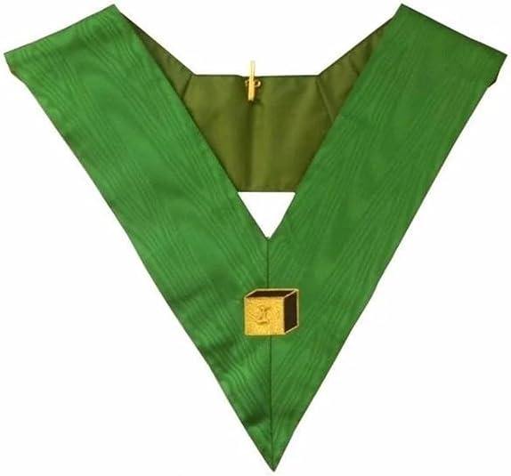 Collar de 5.º Grado del Rito Escocés - Collares masónicos con bordado a máquina en Moiré verde sin igual.
