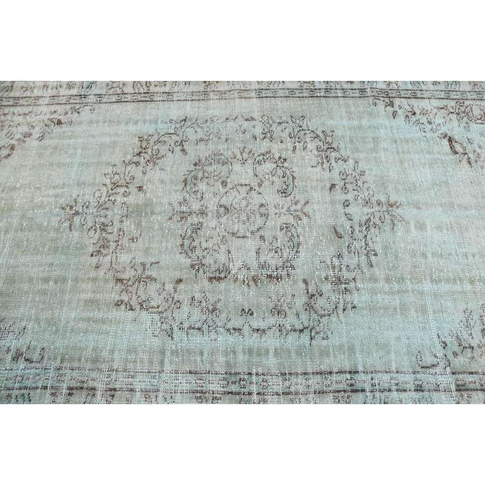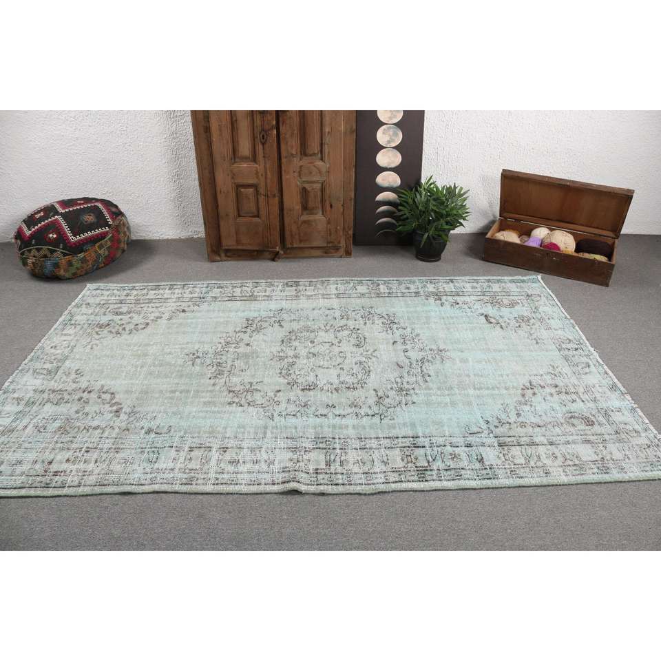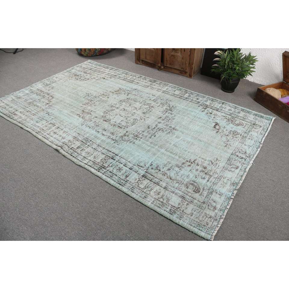 Alfombra Turca Vintage de 5x8.4 pies, Alfombra Grande, Alfombra de Lana Azul