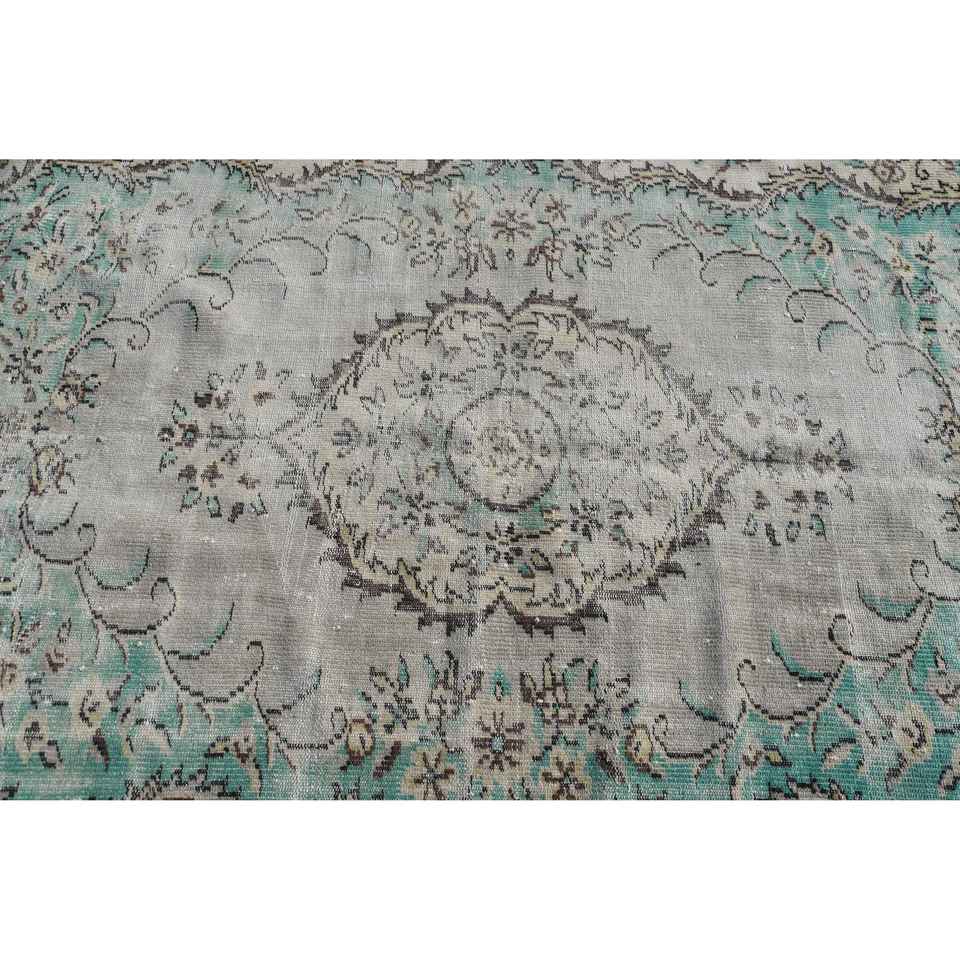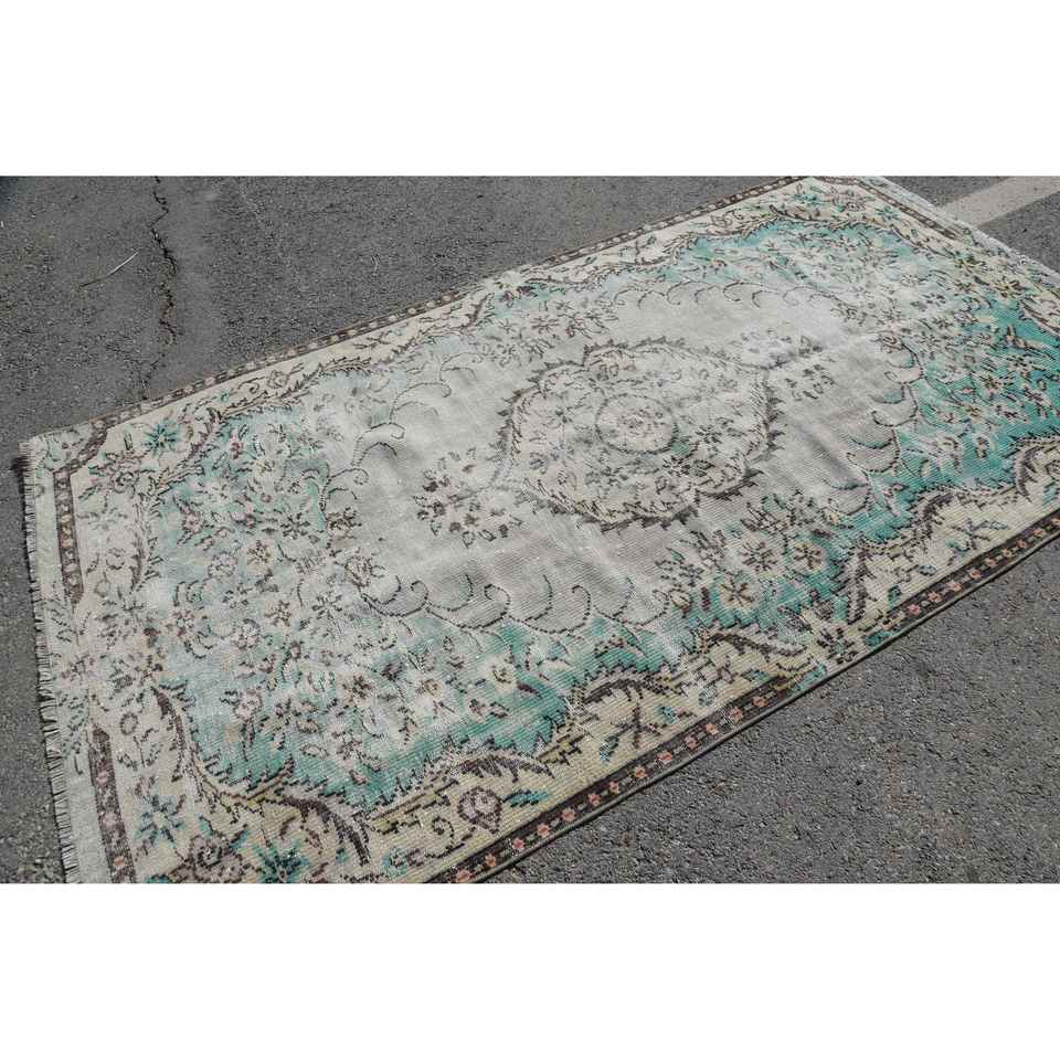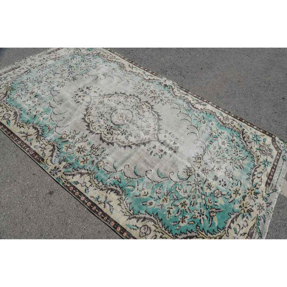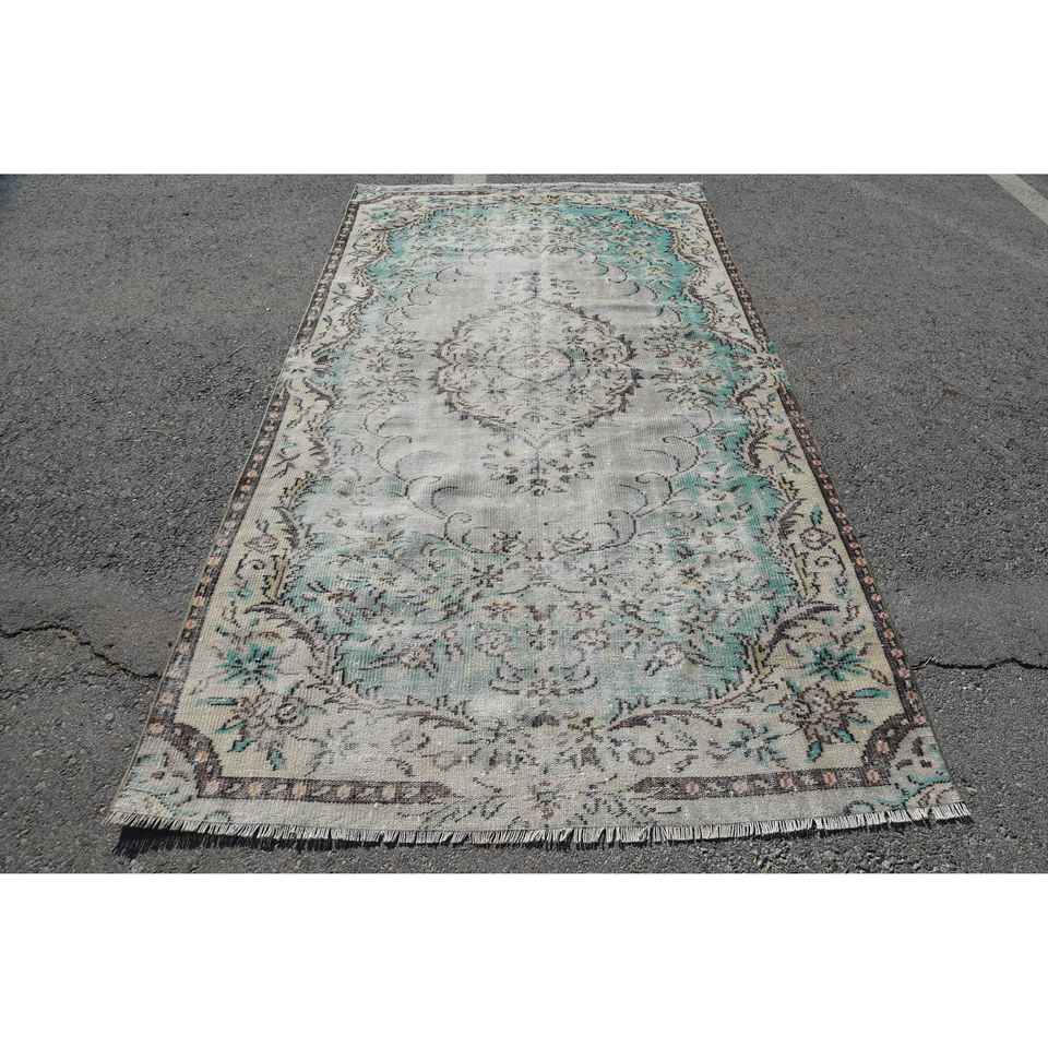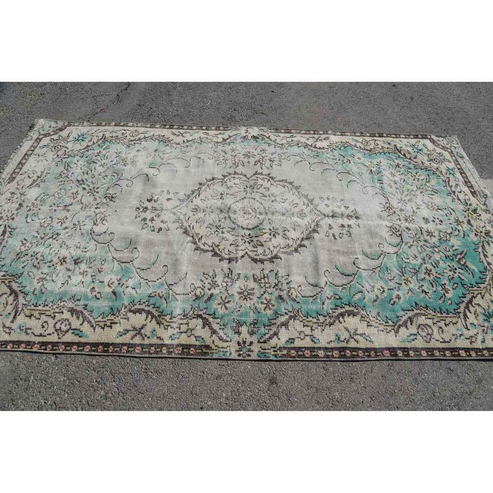 Alfombra Vintage de 5x9.1 pies, Alfombra Turca Grande, Alfombra de Camuflaje Azul y Blanca