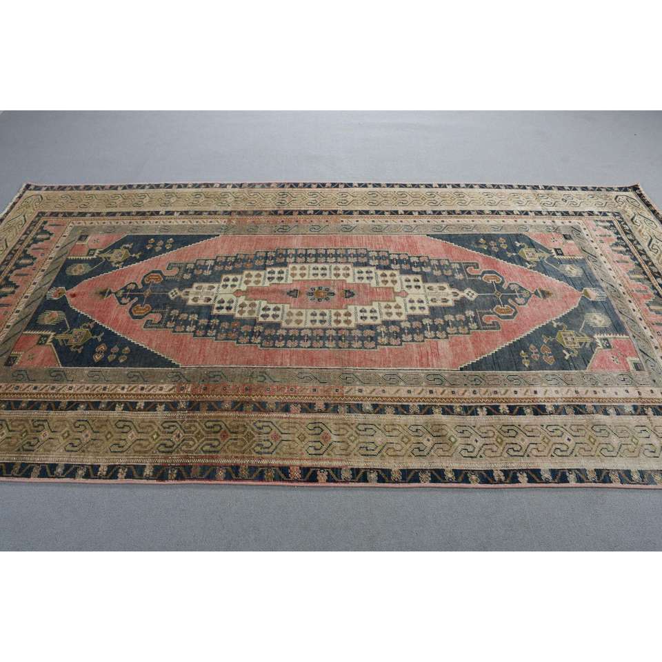 Alfombra Turca Vintage de 5x9,5 pies, Alfombra Grande, Alfombra de Lana Azul