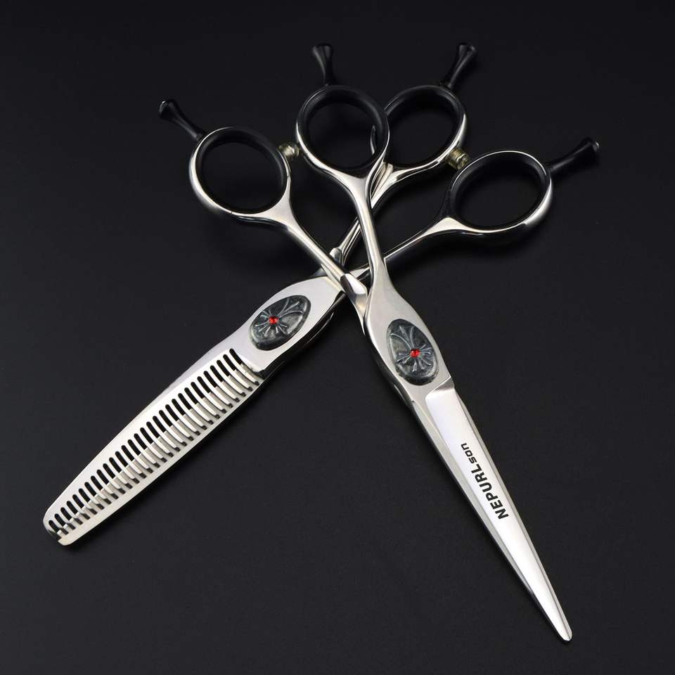Tijeras de peluquería de 6.0 pulgadas para zurdos, de doble filo, con diseño de trébol y corazón, para corte de cabello, tijeras planas, tijeras dentadas para flequillo y tijeras de entresacar