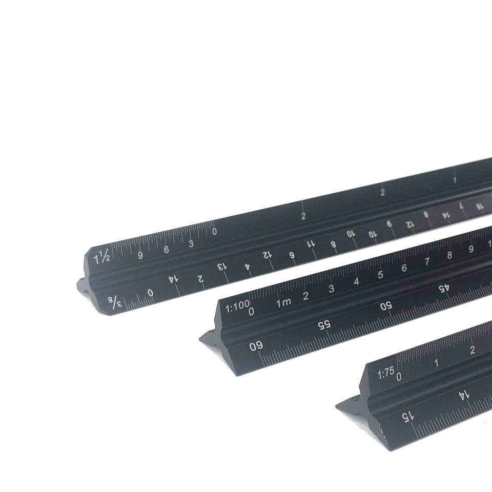 Regla de escala de medición triangular de aluminio de 6 '12 ''para estudiantes Blueprint arquitectos dibujante ingeniero