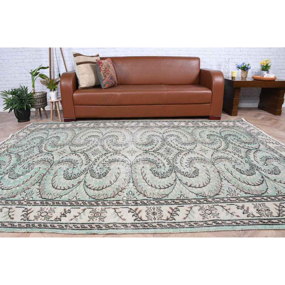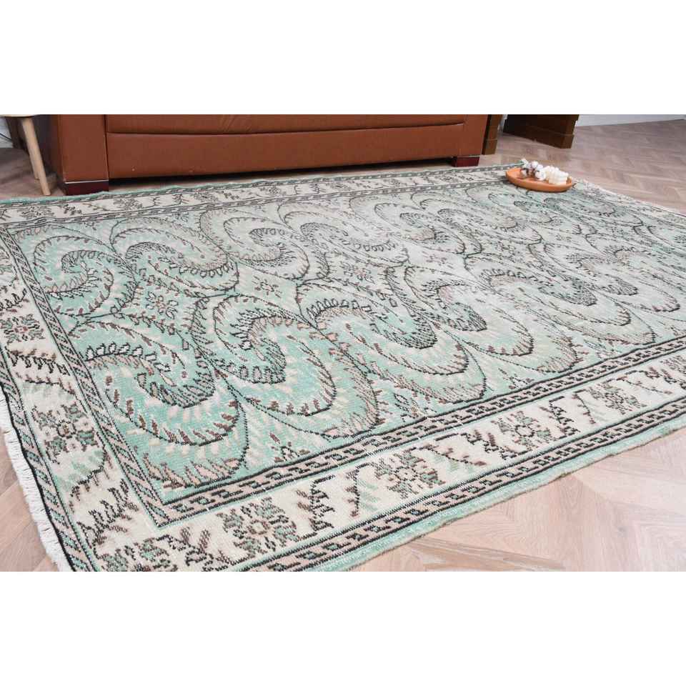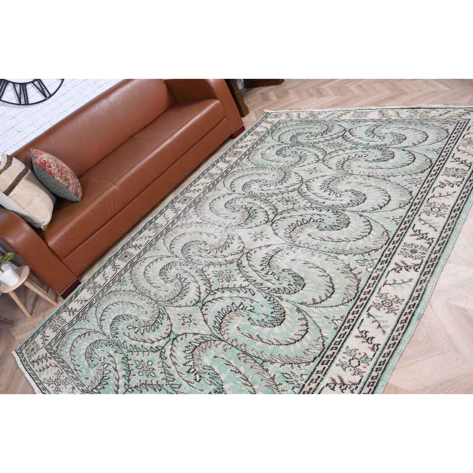 Alfombra Turca de 6.1x8.8 pies, Alfombra Vintage, Alfombra de Lana con Diseño Floral Azul