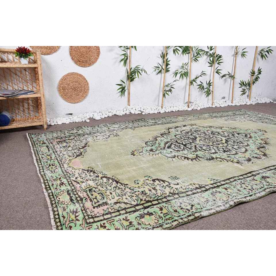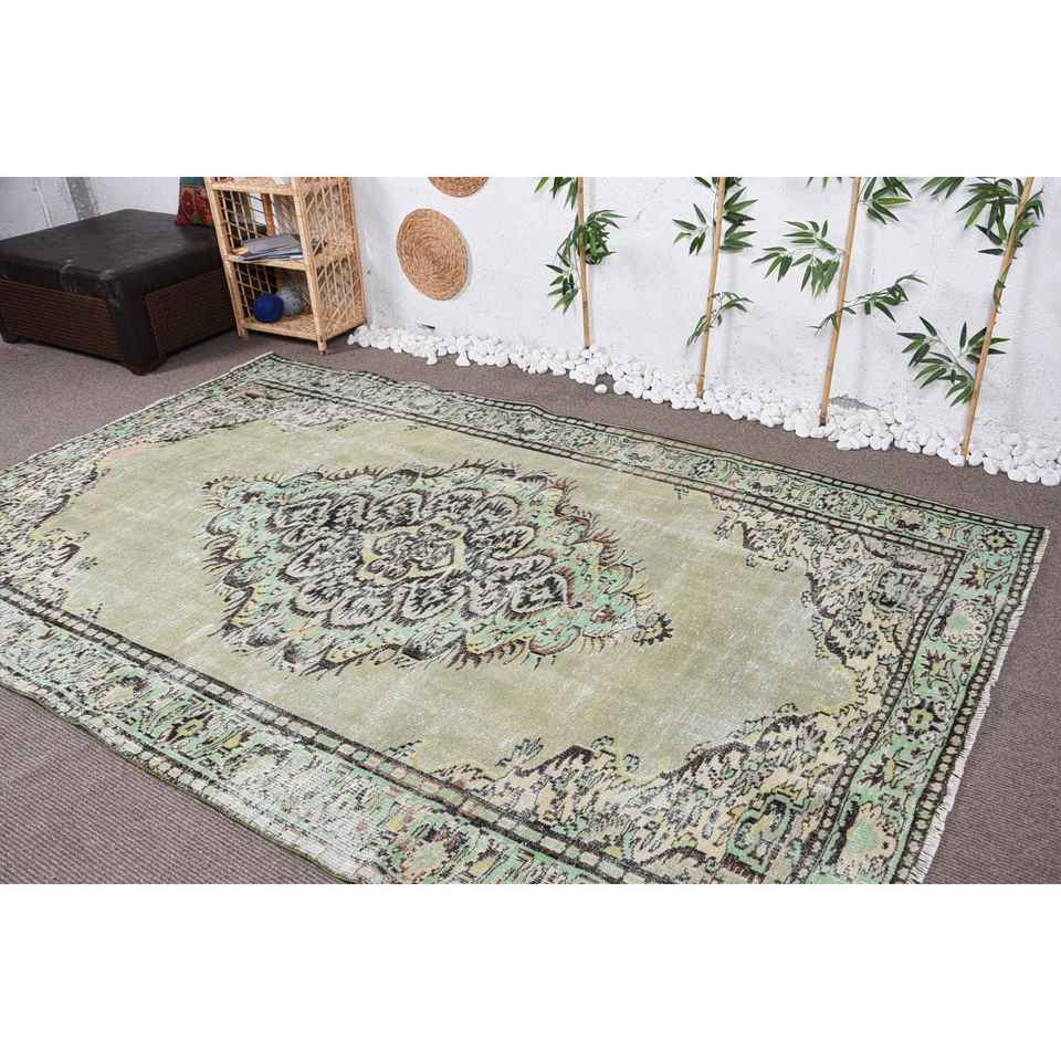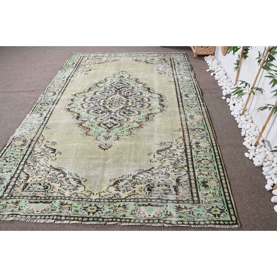 Alfombra Turca de 6,1x9,7 pies, Alfombra, Alfombra Verde a Rayas de Lana
