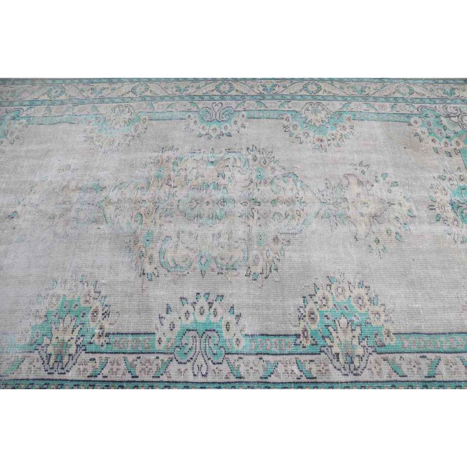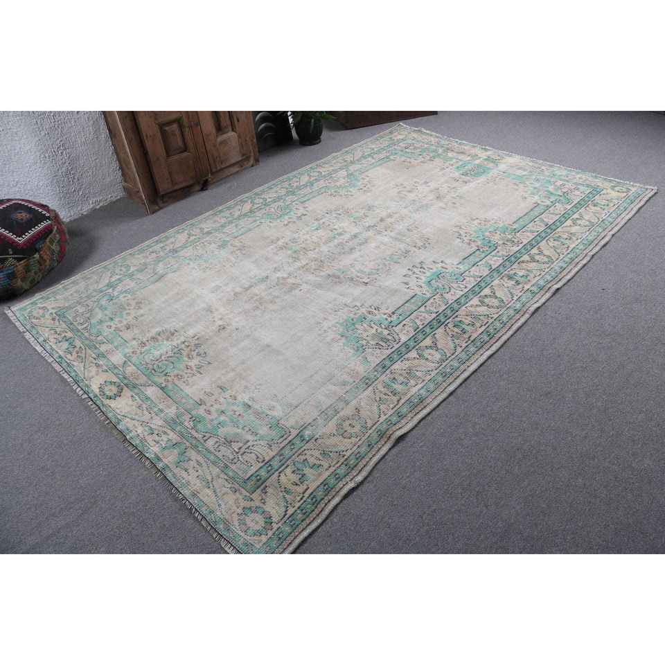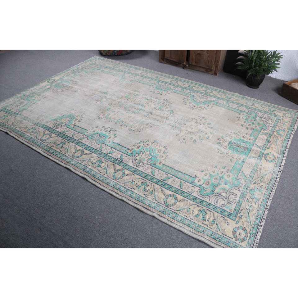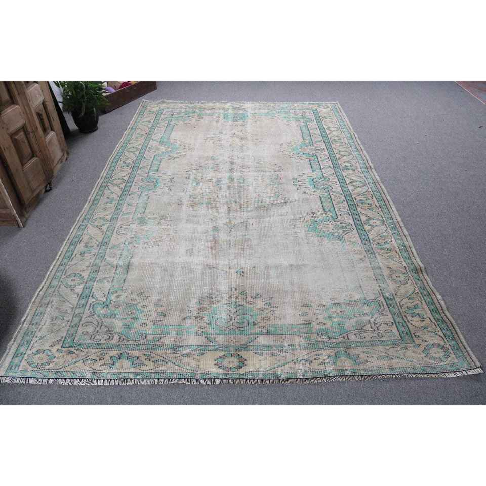 Alfombra Vintage de 6.2x9.3 pies, Alfombra Turca de Lana con Diseño de Camuflaje Azul