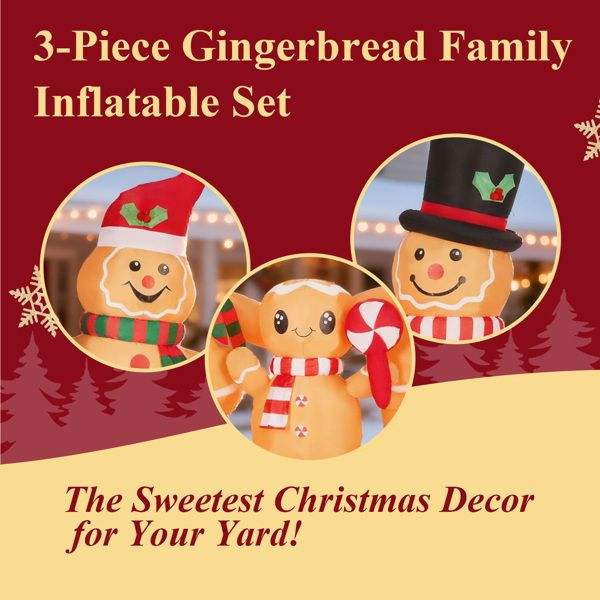 Decoración Navideña Inflable Iluminada de 6.3 Pies, Divertido Hombre de Jengibre Familiar, Decoraciones para Jardín Exterior, Diseñadas para Inflar