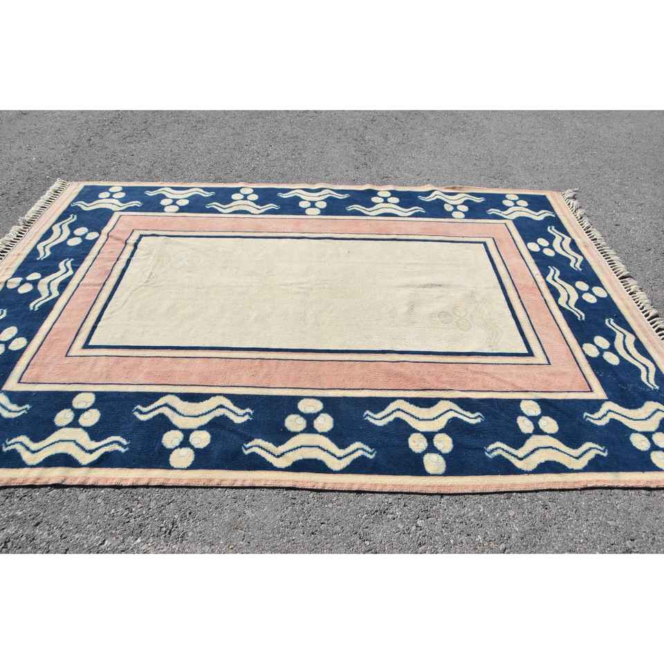 Alfombra de 6.3x8.8 pies, Alfombra Turca Vintage, Alfombra a Cuadros Azul