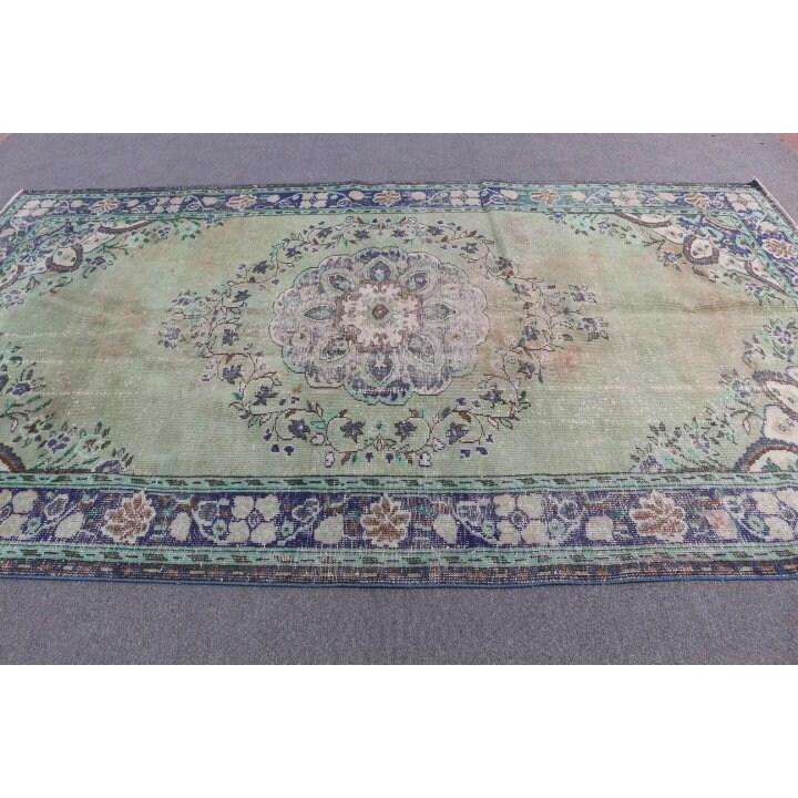 Alfombra de 6.4x10.6 pies, Alfombra Turca Vintage, Alfombra de Lana con Estampado Animal Azul Verde