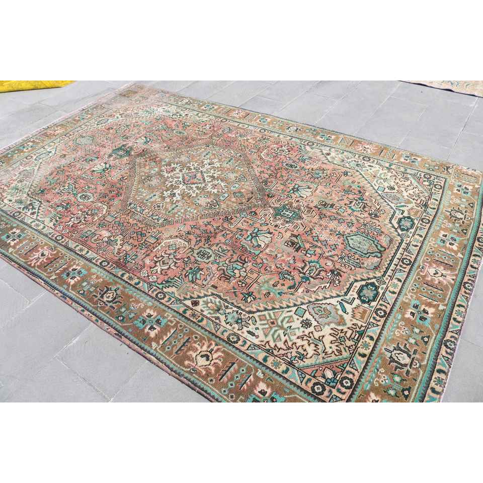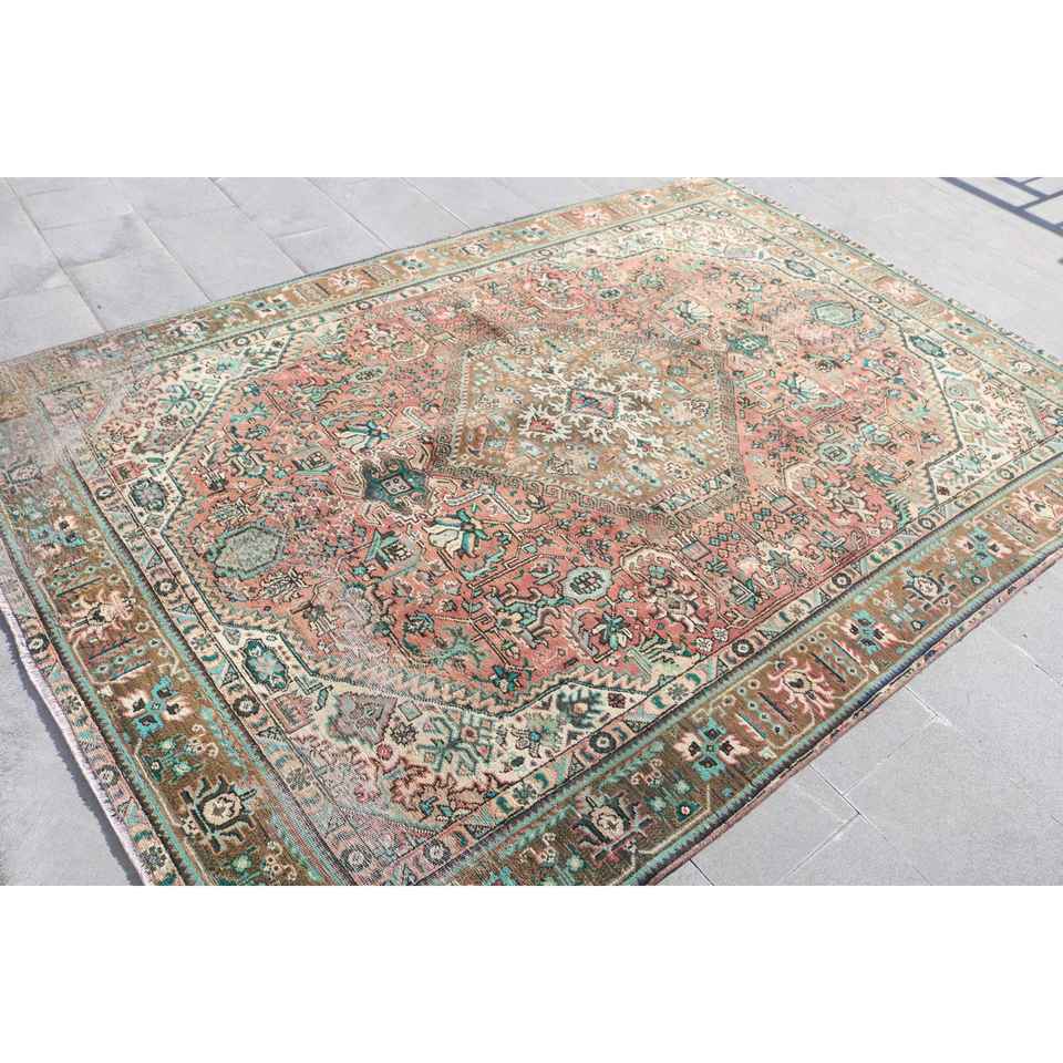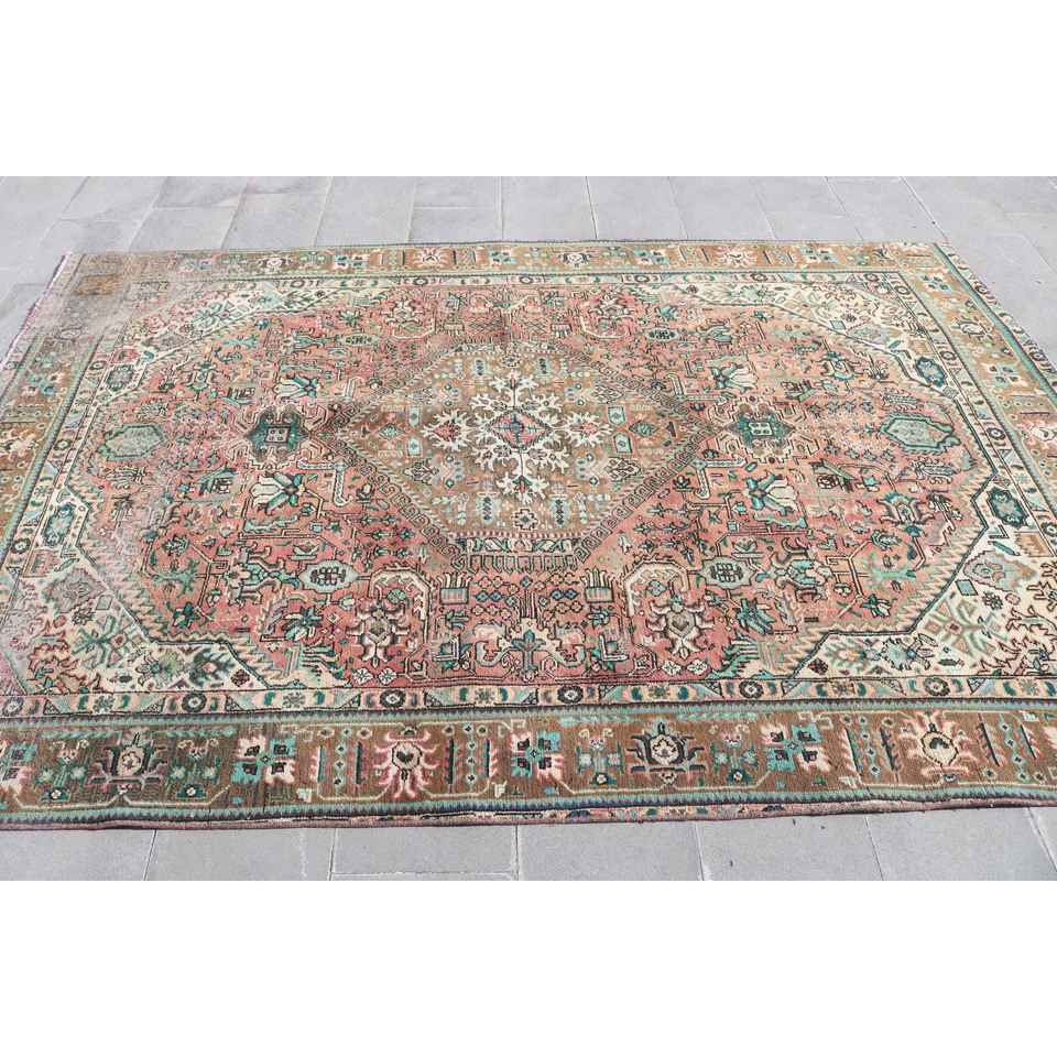 Alfombra Vintage de 6.4x9.4 pies, Alfombra Turca Grande, Alfombra con Rayas Rojas