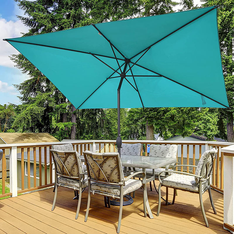 Paraguas Rectangular de 6,5x10 pies para Patio, sombrilla de mesa de mercado al aire libre con botón pulsador, inclinación, para playa