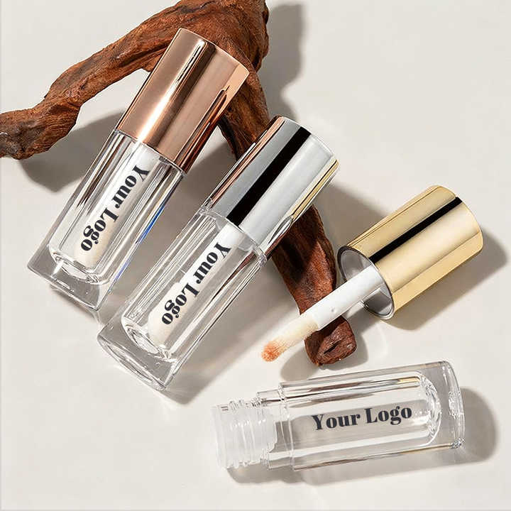 Tubos vacíos de brillo de labios dorados, plateados y rosas de 6,5 ml en stock con cabezal de cepillo grande y tallo grueso