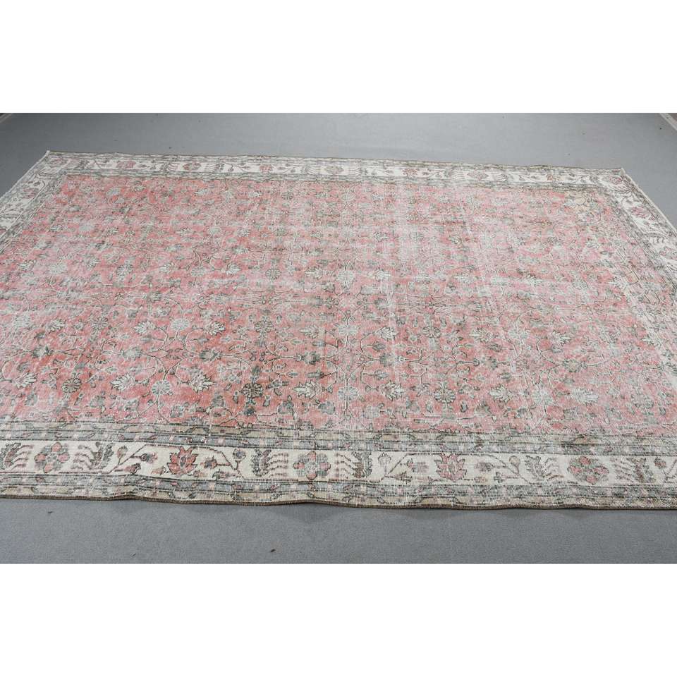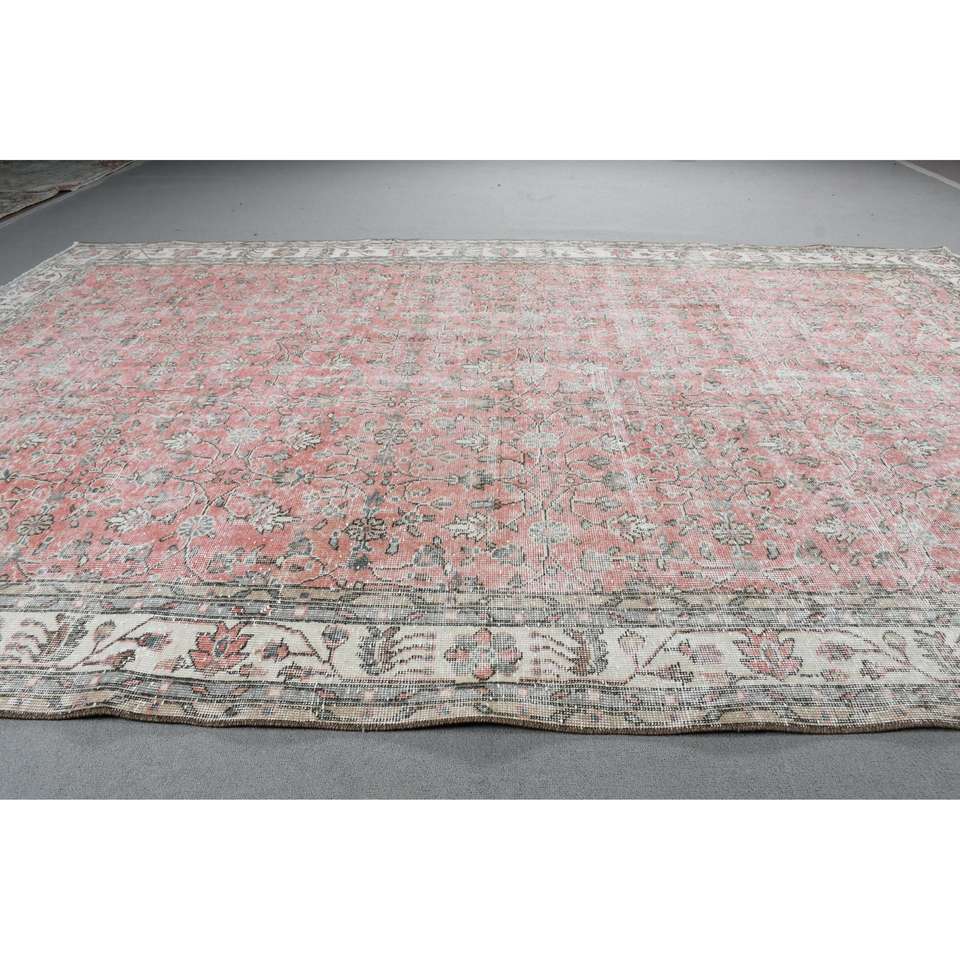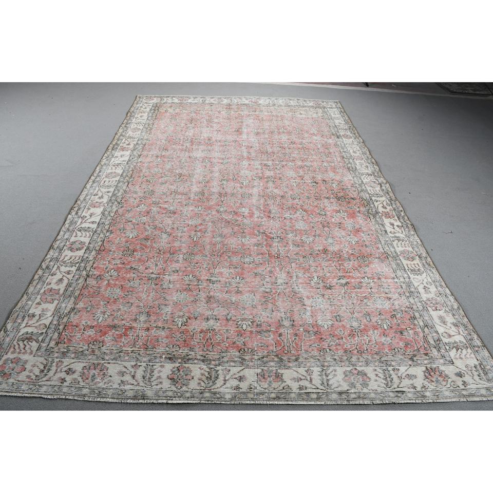 Alfombra de 6,5x10 pies, Alfombra Turca Vintage, Alfombra Ikat Roja y Gris