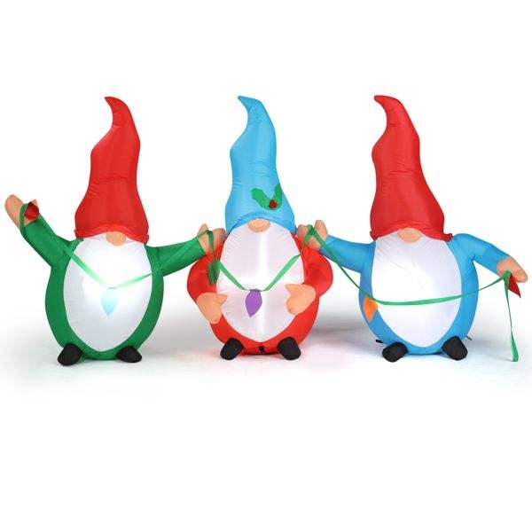 Decoración Navideña Inflable Iluminada de 6.6 Pies, Divertidos Adornos Inflables para Jardín, Tres Gnomos Elfos, Decoraciones Navideñas para Exteriores