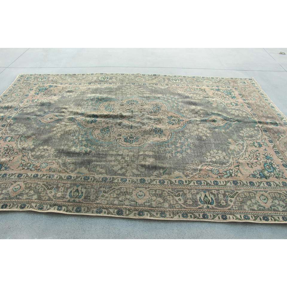 Alfombra de 6.6x9.5 pies, Alfombra Turca Vintage, Alfombra Azul Sólida